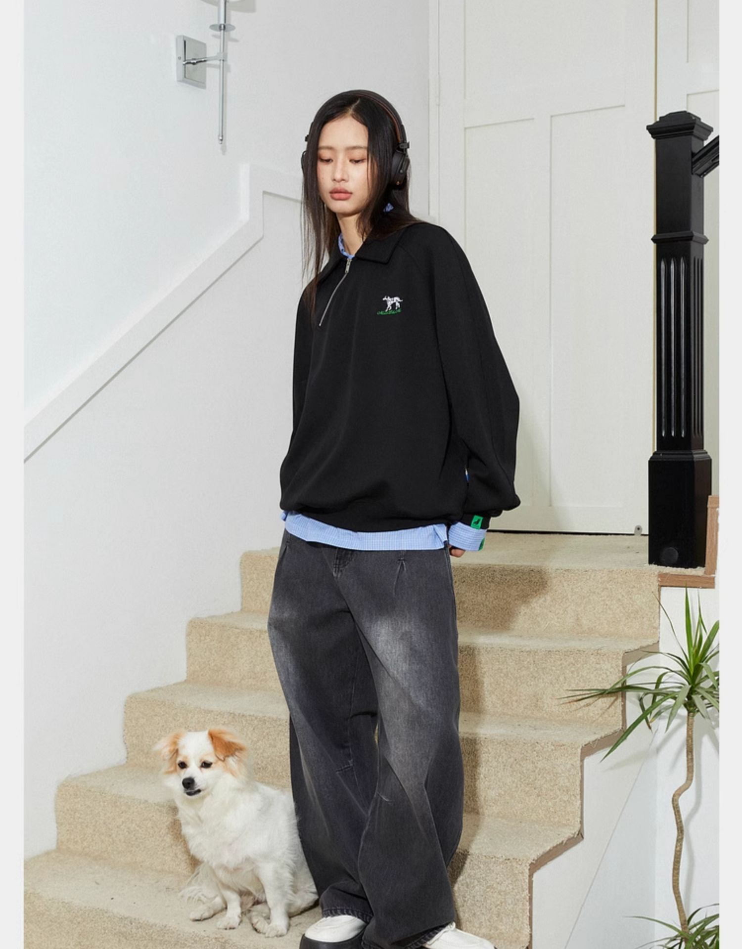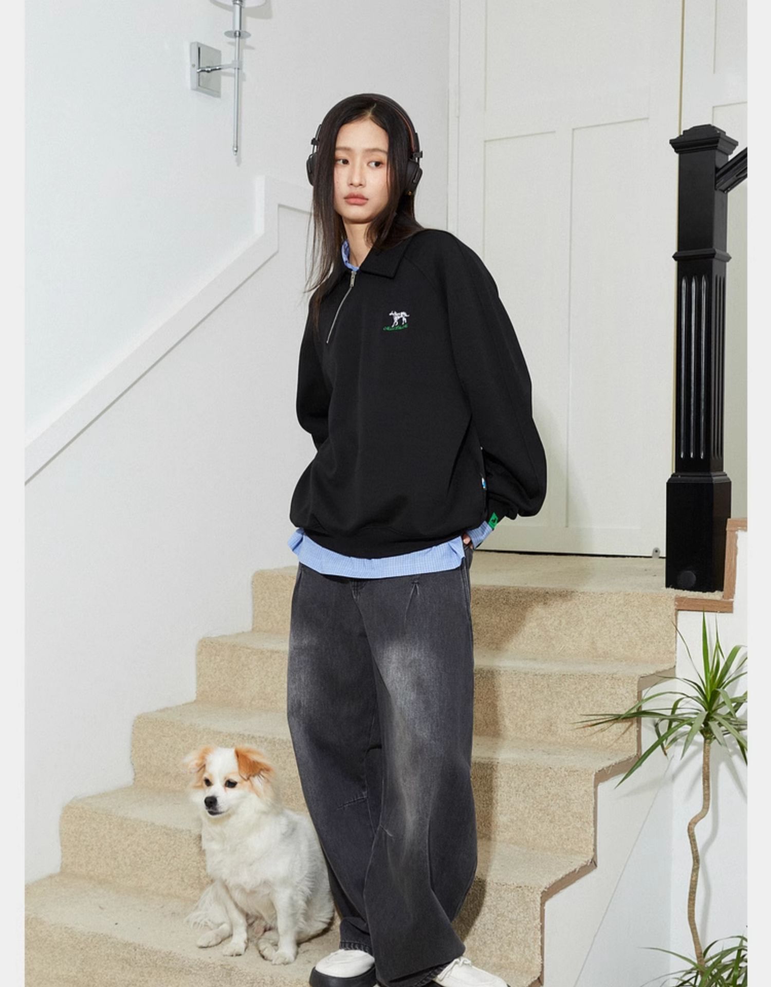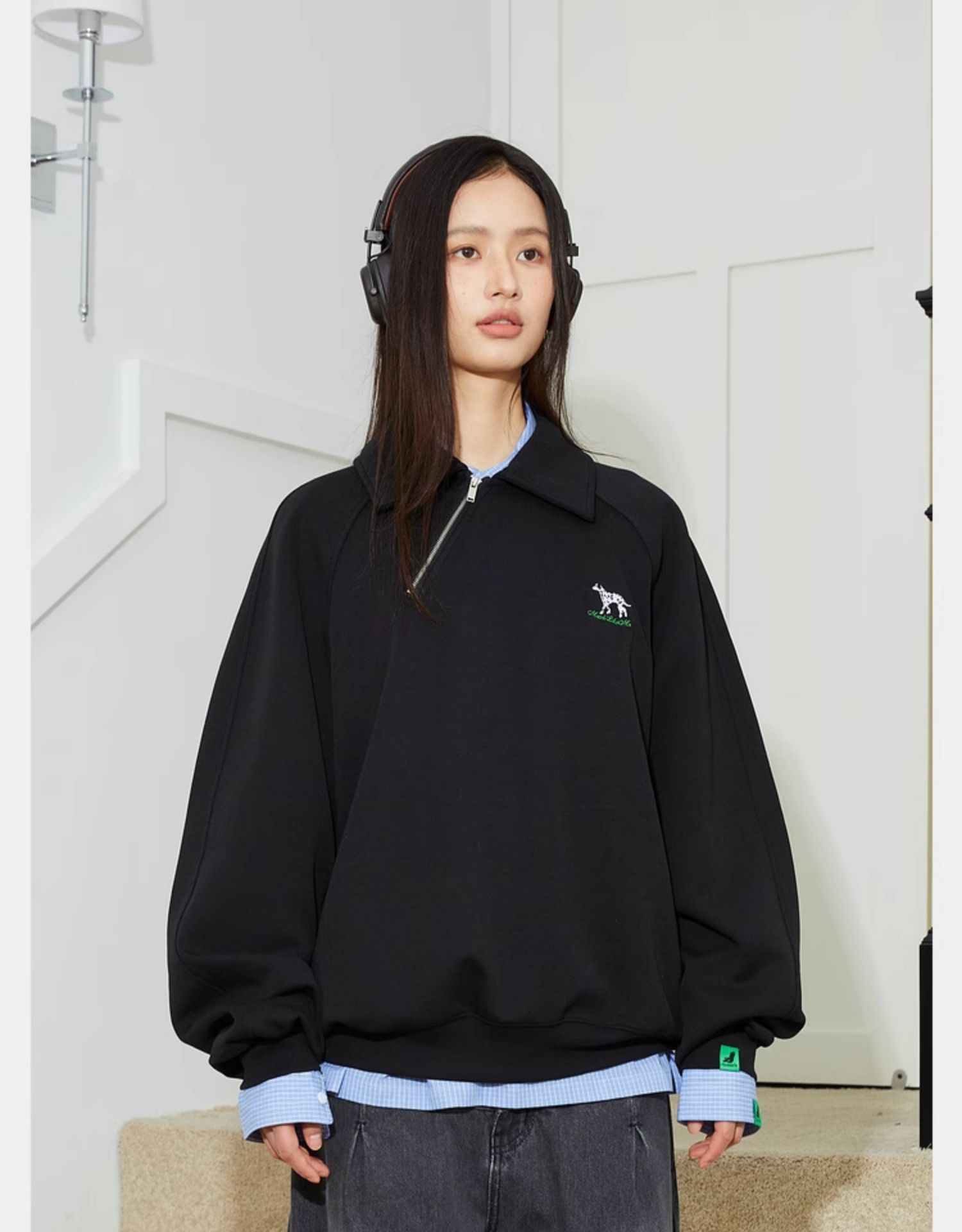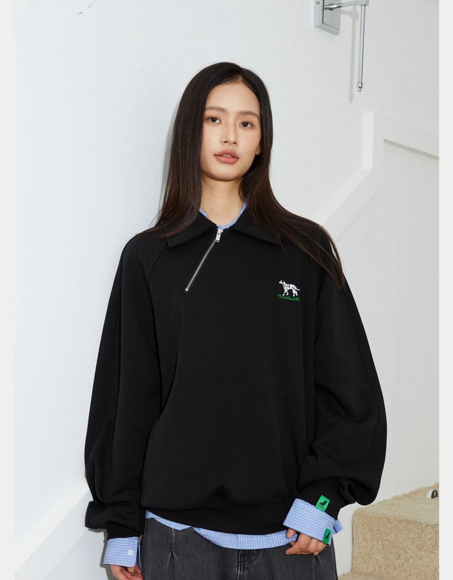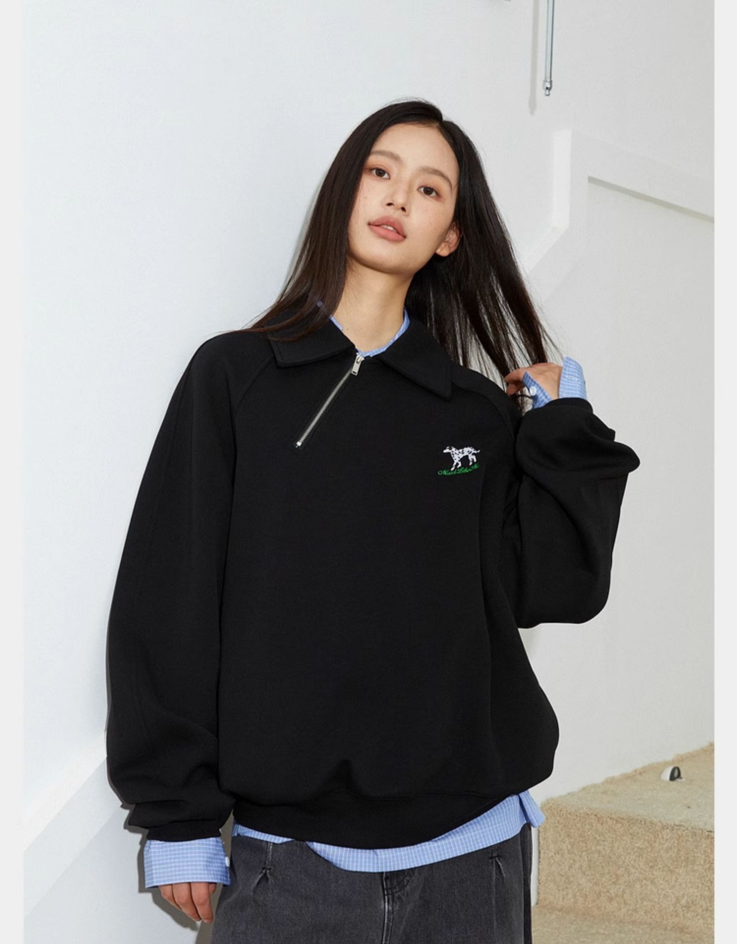Mood Like Me/MPL2402/斜门襟半开领刺绣斑点狗polo领卫衣