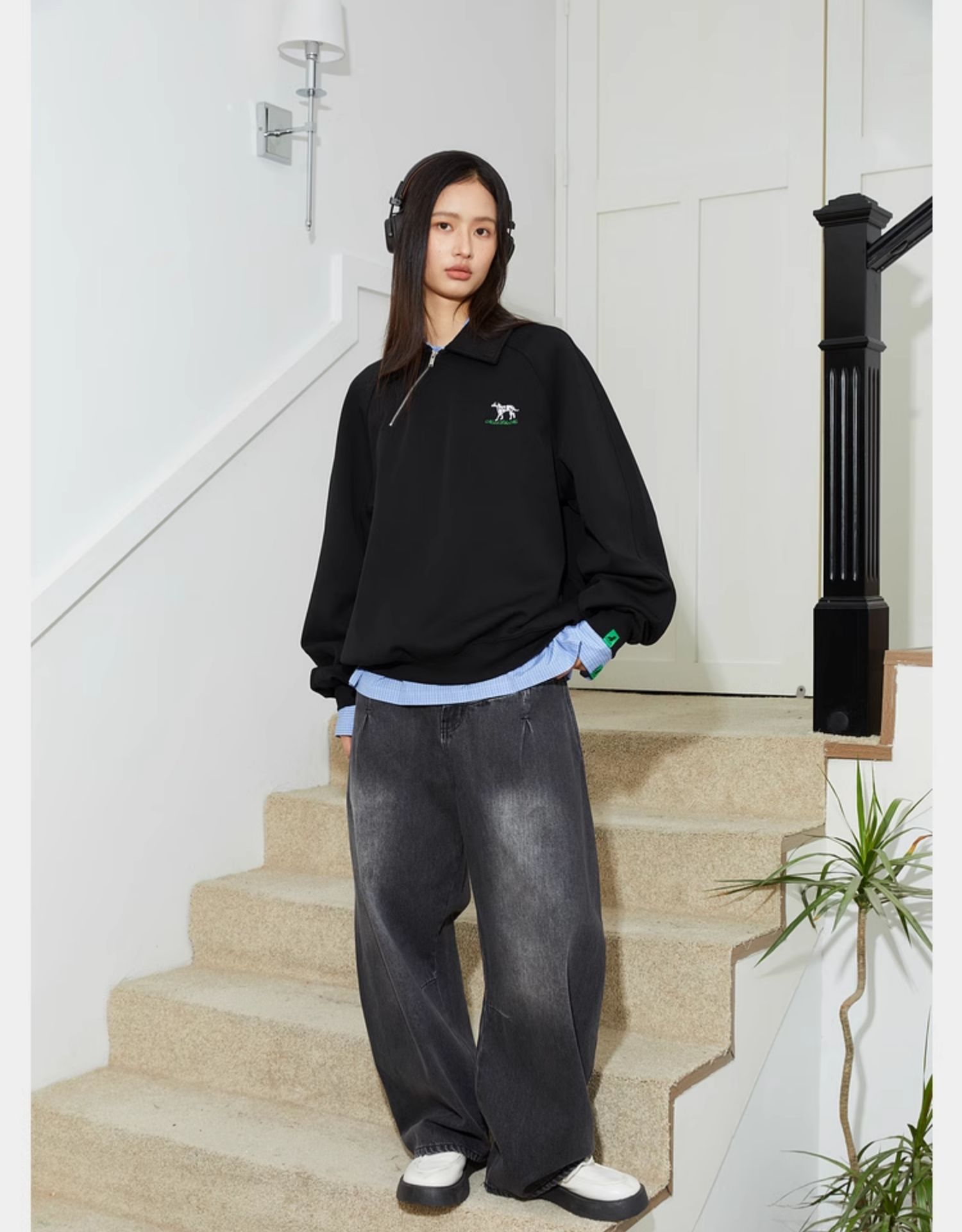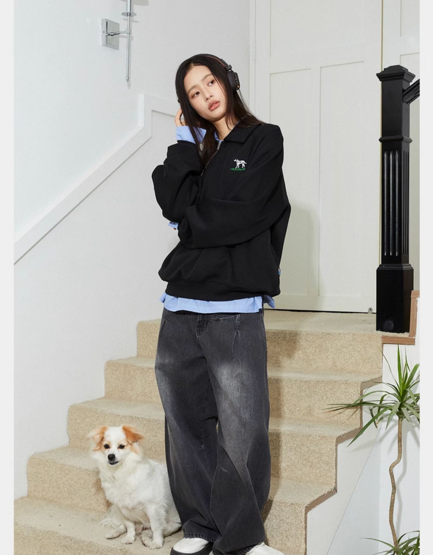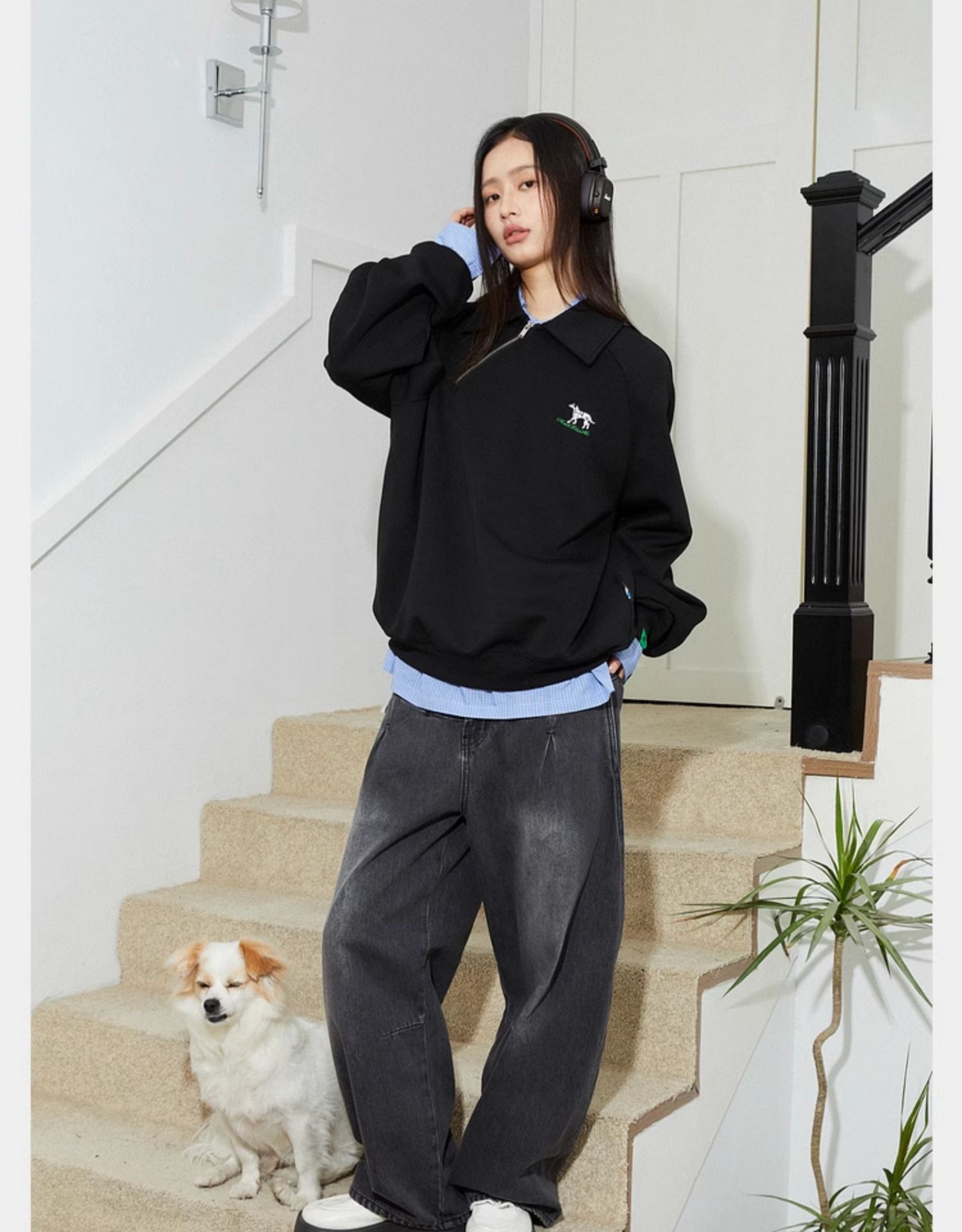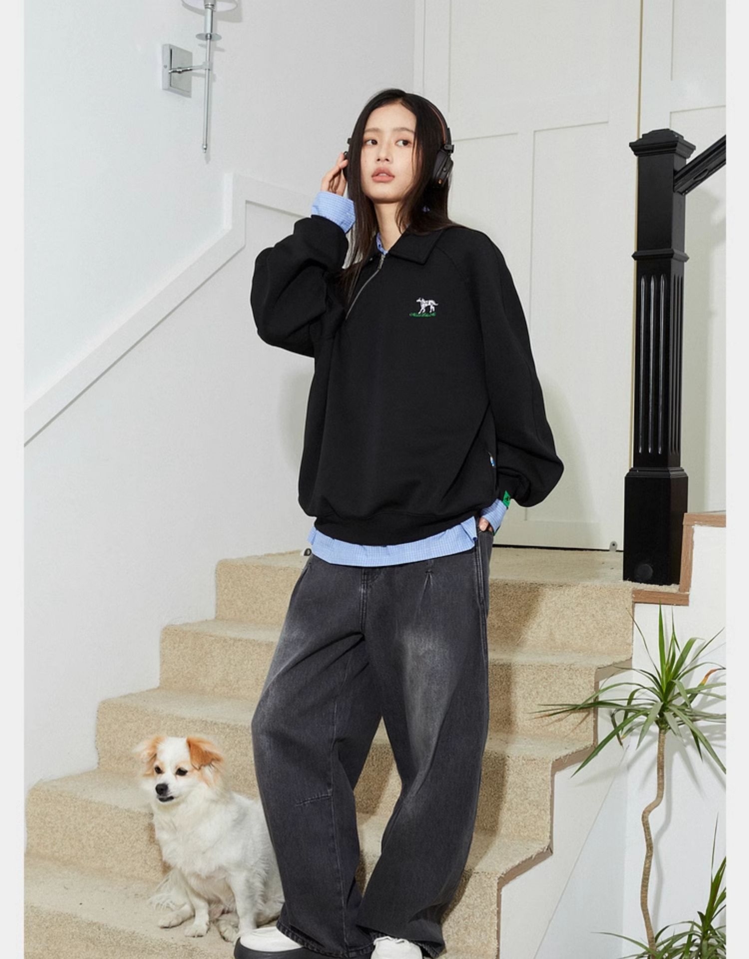 Mood Like Me/MPL2402/斜门襟半开领刺绣斑点狗polo领卫衣