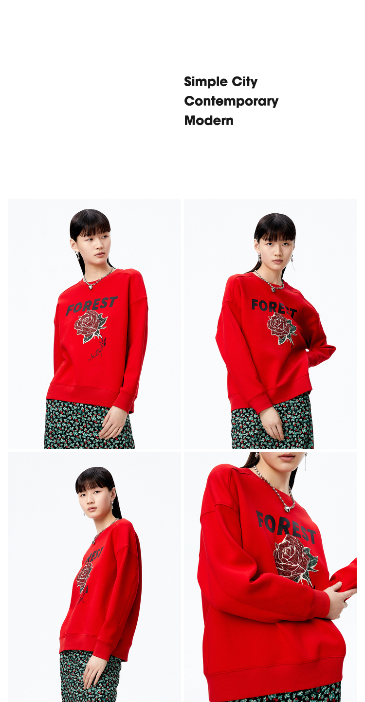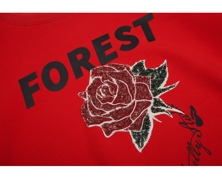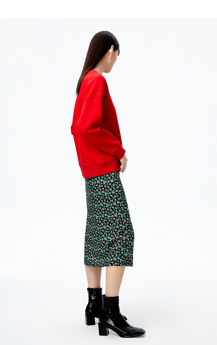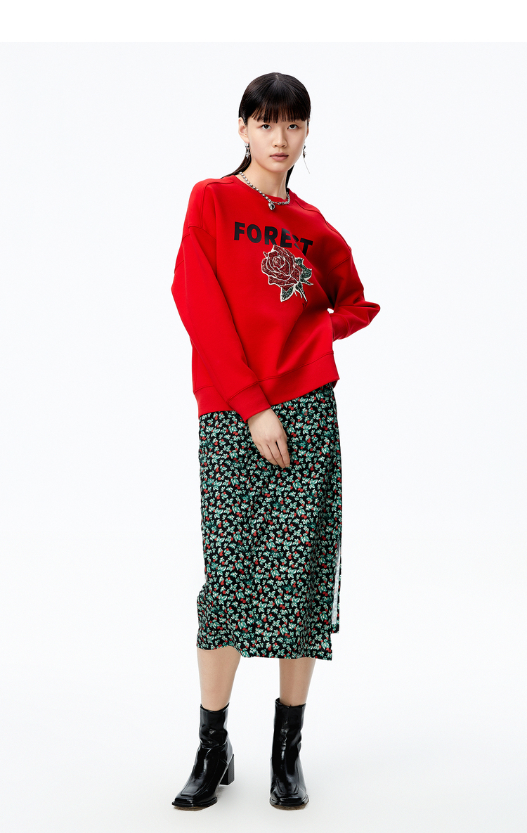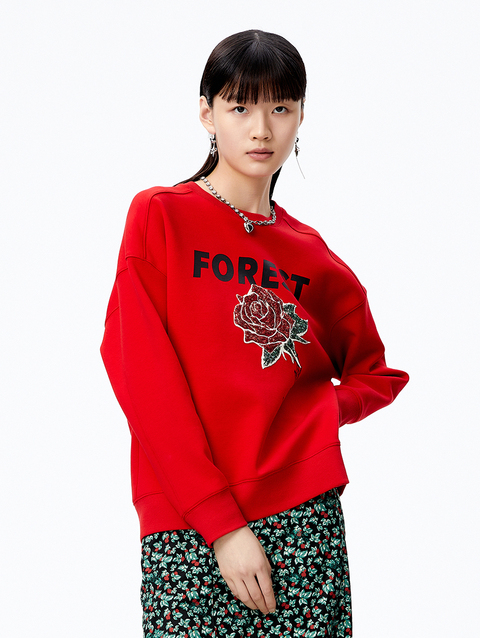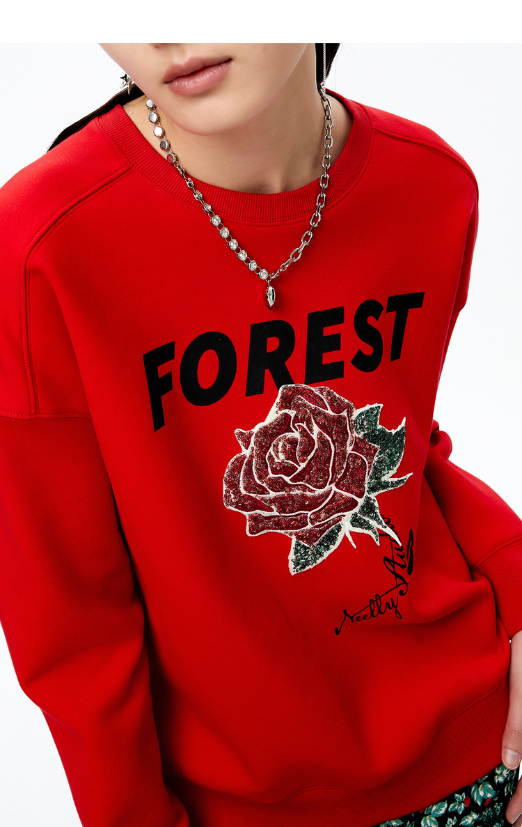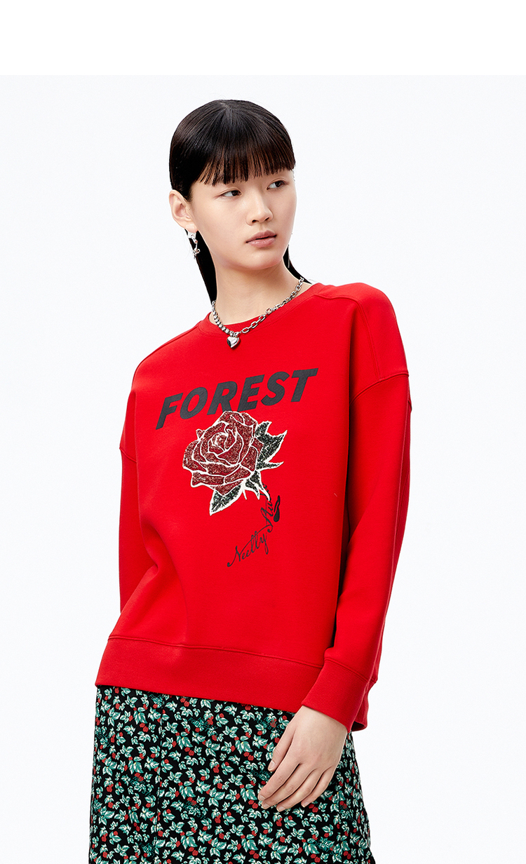NEELLY纳俪商场同款字母玫瑰亮片卫衣女圆领落肩袖上衣宽松休闲N22082J01080