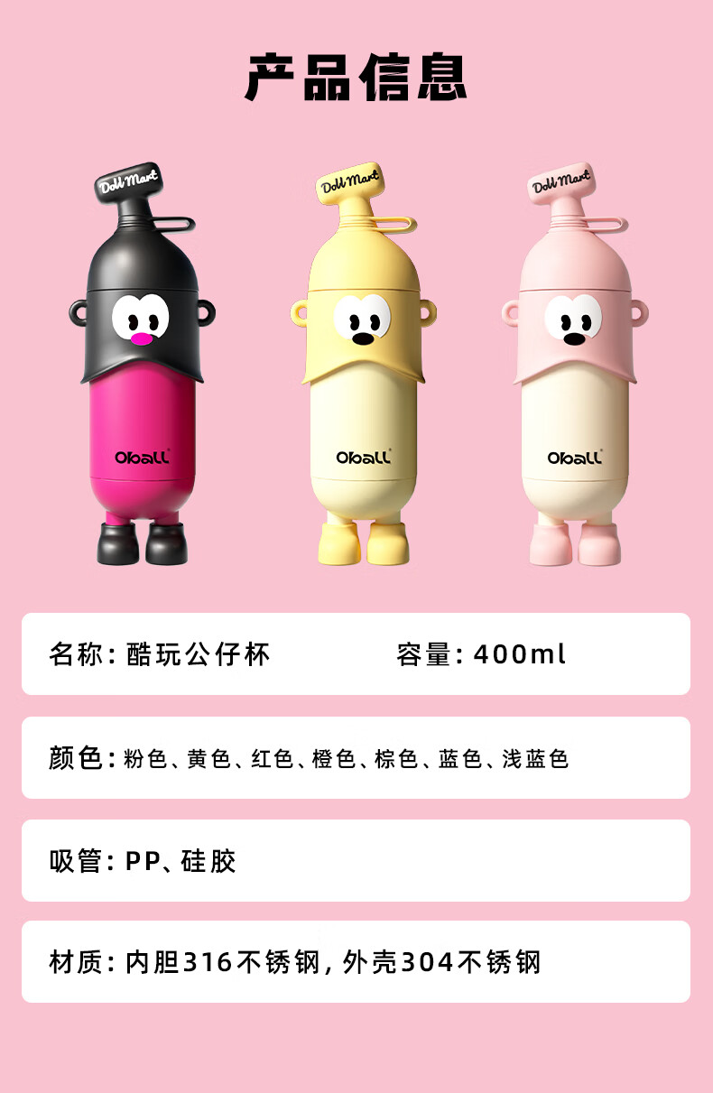 OBALL保温杯公仔杯2024新款儿童潮玩礼物水杯 400ml JCZ