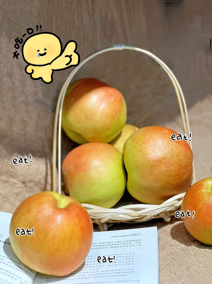 兼具库尔勒的酥脆和雪花梨的大个头,皮薄肉嫩,细腻无渣