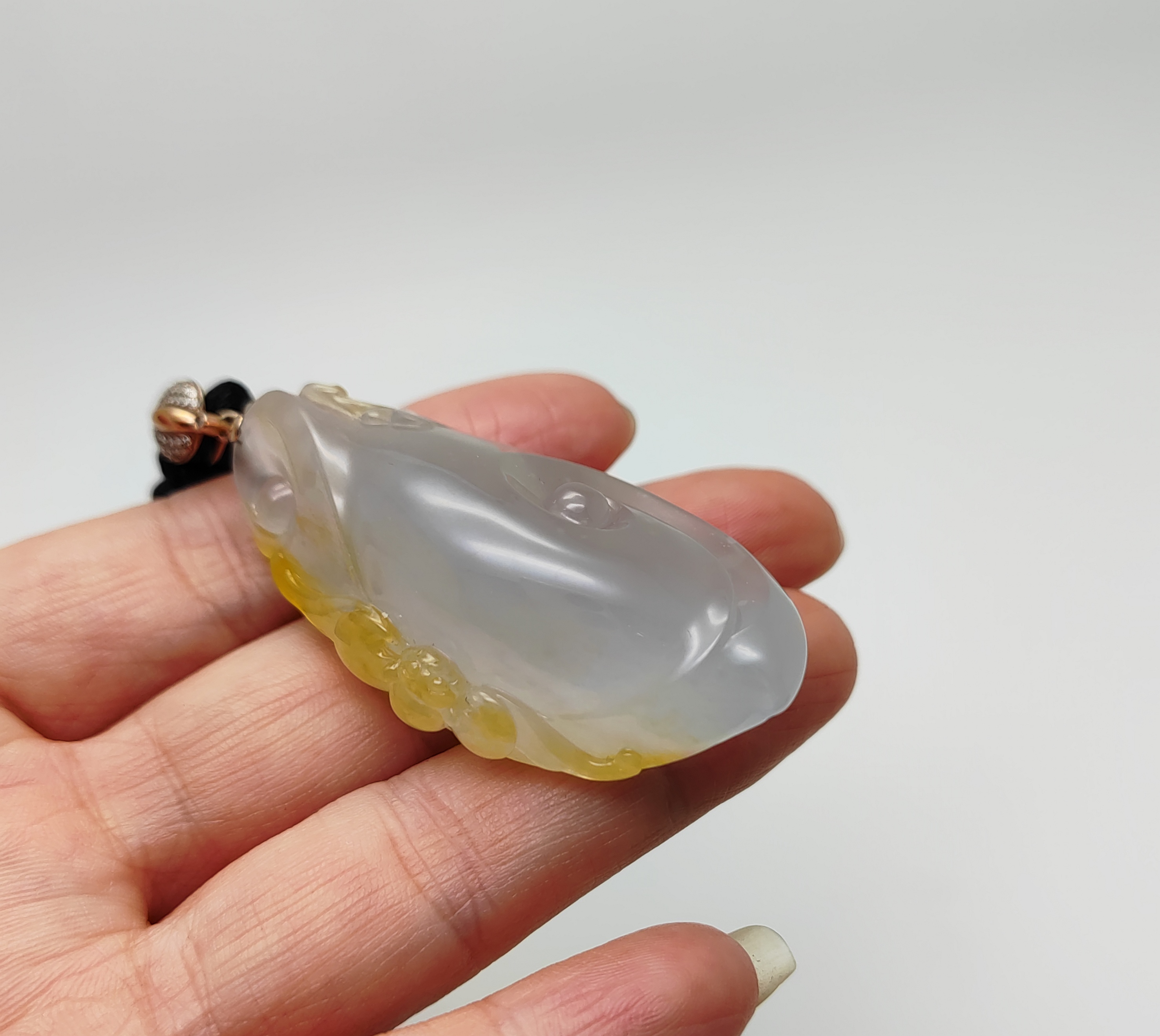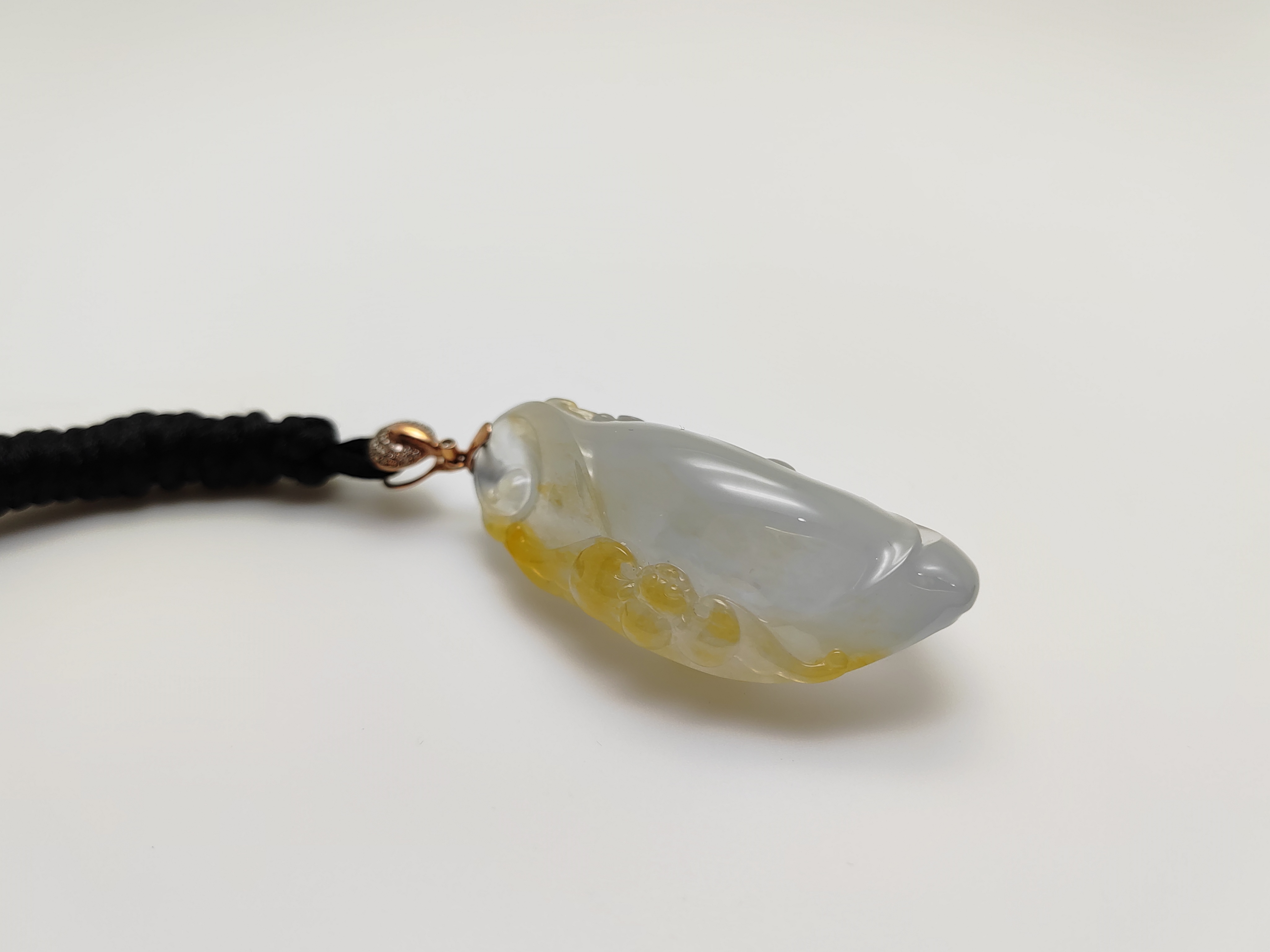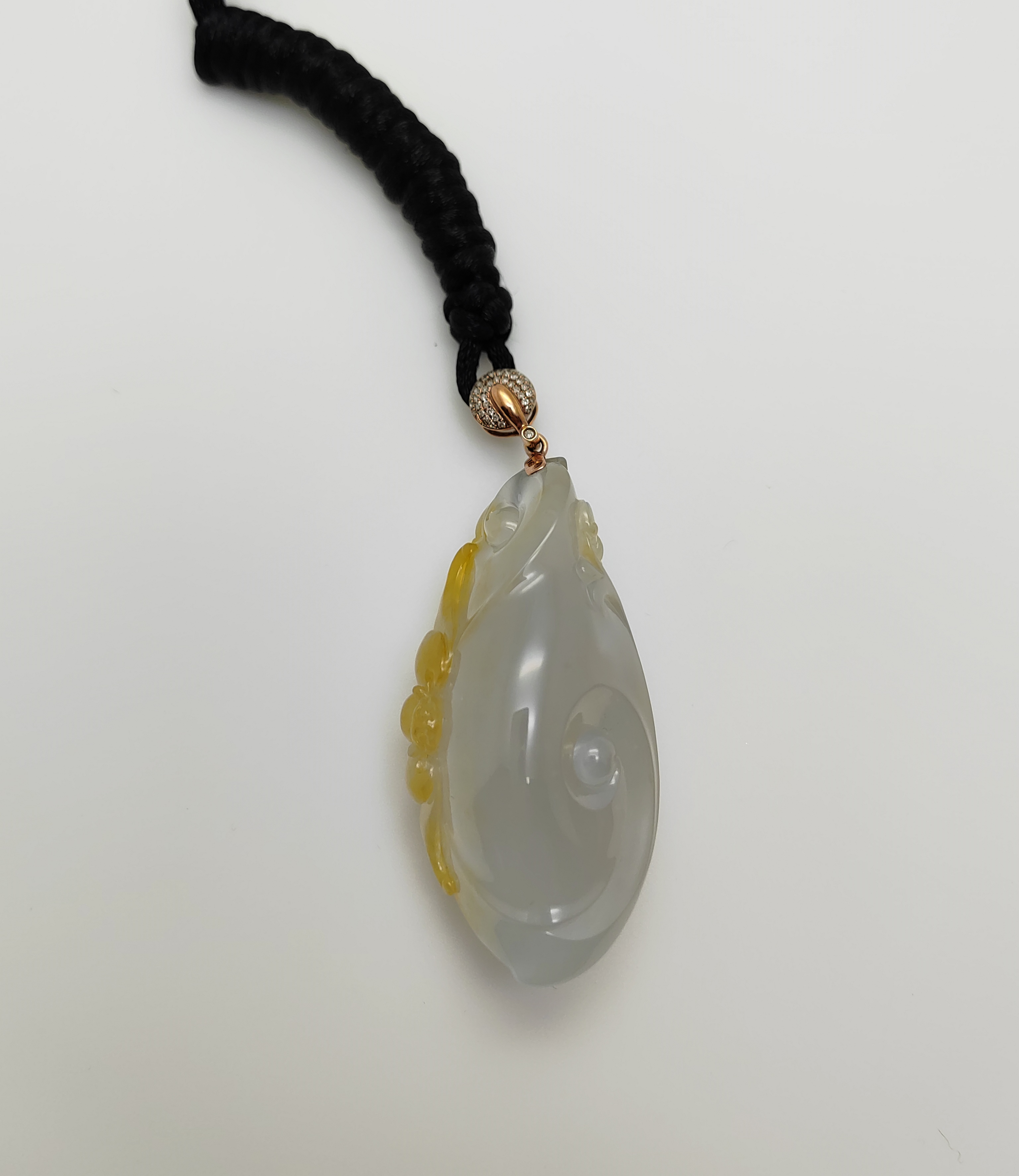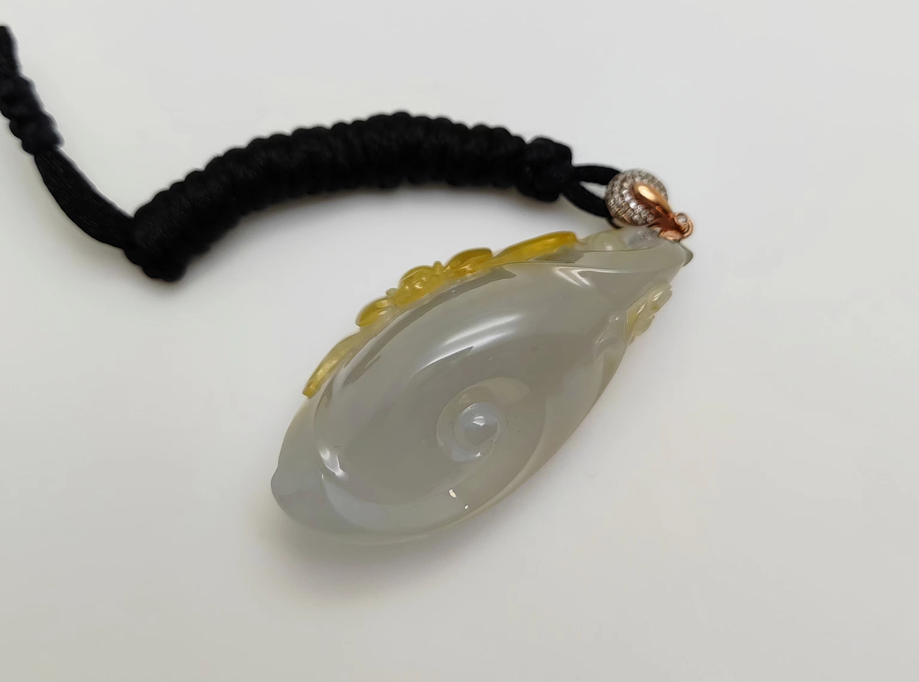 冰种翡翠葫芦18K金钻石镶嵌设计款吊坠
