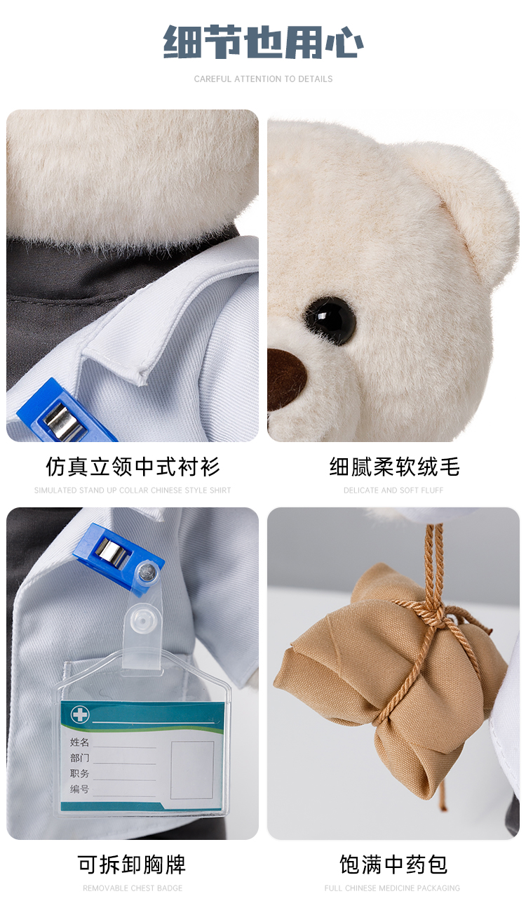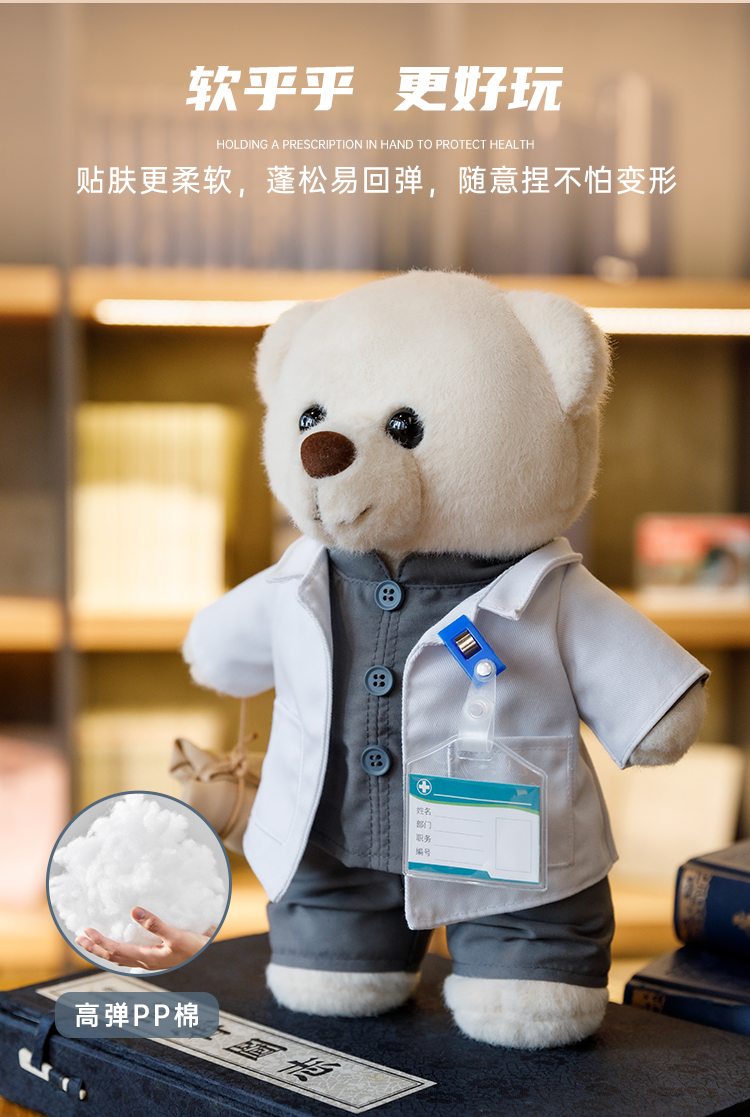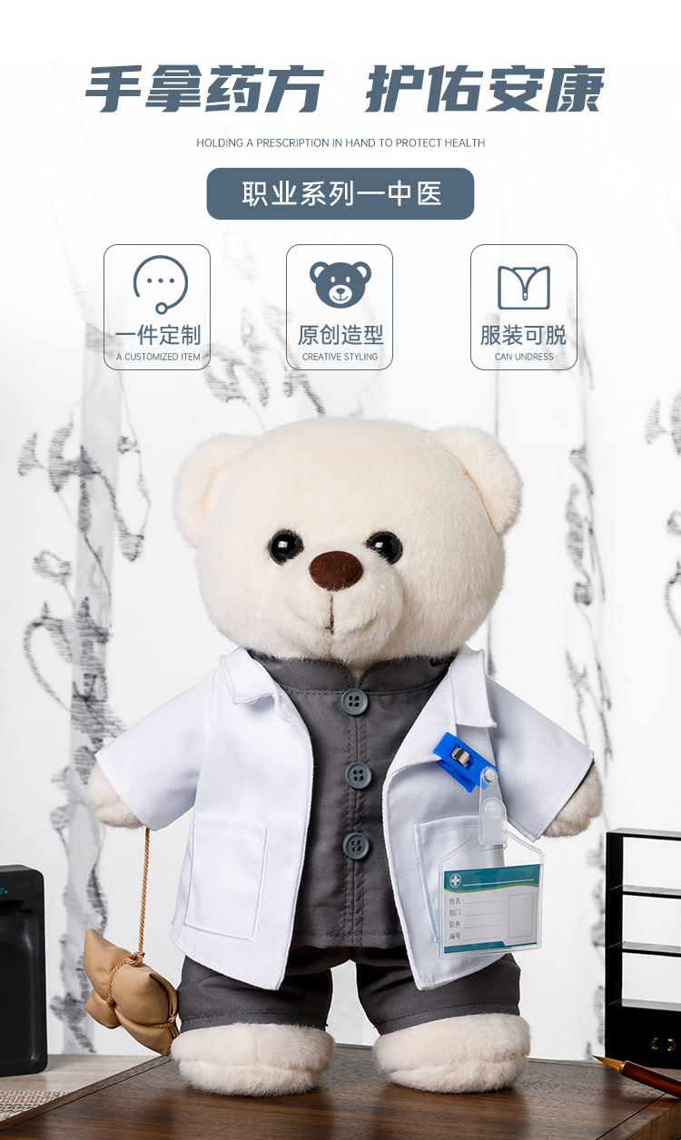 【实付满199送钥匙扣】【中医小熊】可定制创意毛绒职业小熊公仔儿童玩具服装可脱送礼礼物