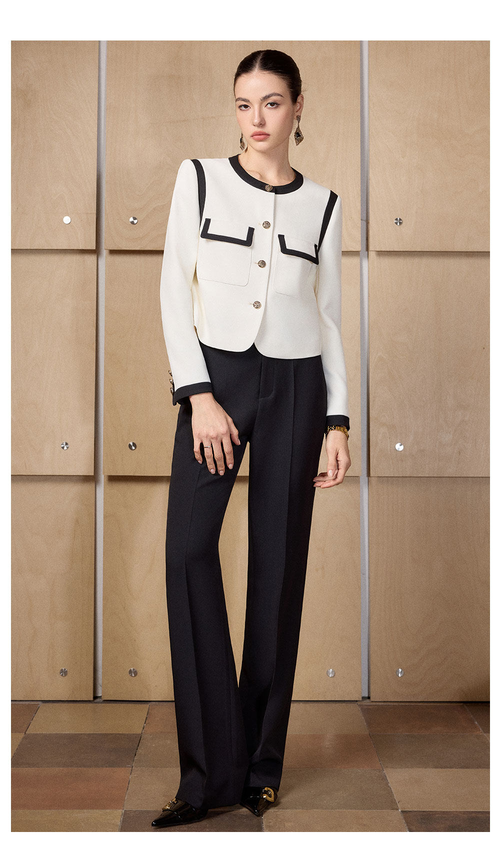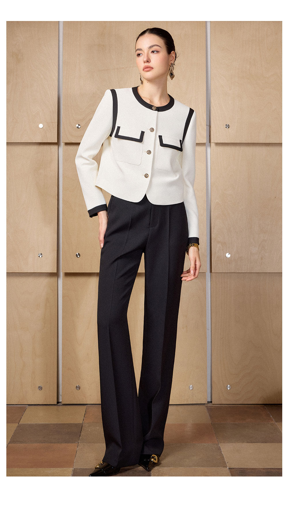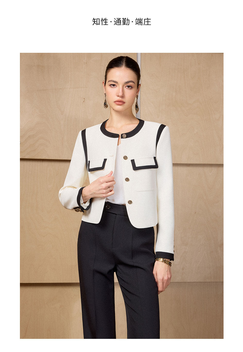 IWY/小香风黑白撞色西装套装女春秋职场穿搭显瘦高级感两件套C2723+P2507