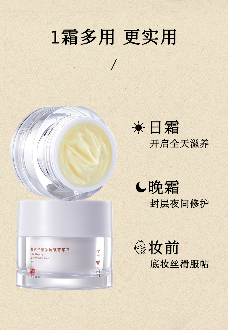 凝时光塑颜抗皱菁华霜 5重多肽加玻色因唤醒肌肤 拒绝皱纹细纹干燥 多用途日霜晚霜妆前乳 华宫雪面霜50g/瓶