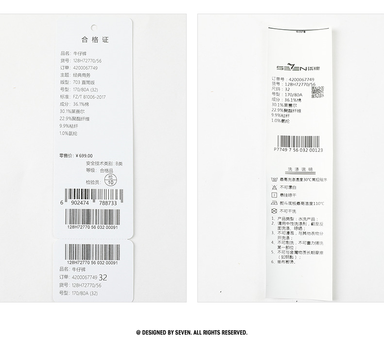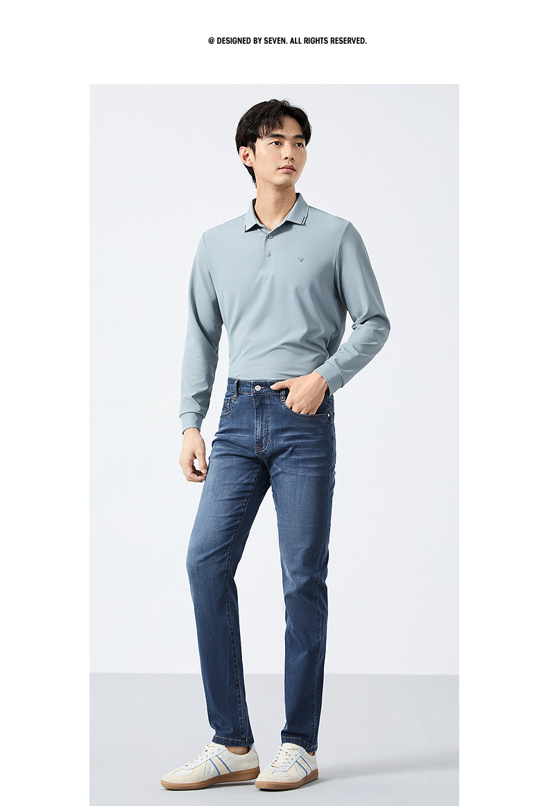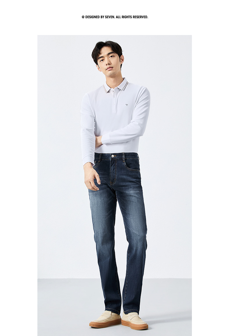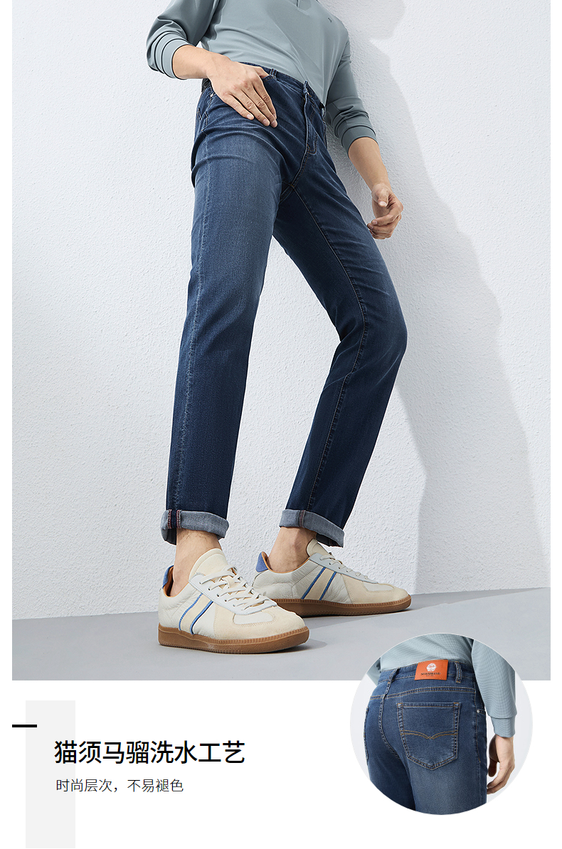 【含莱赛尔】柒牌弹力牛仔裤男春季新款潮流百搭简约水洗直筒长裤 128H72770