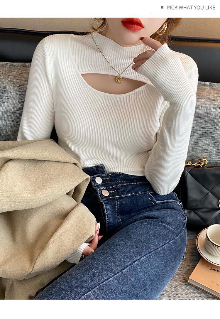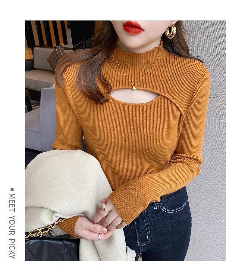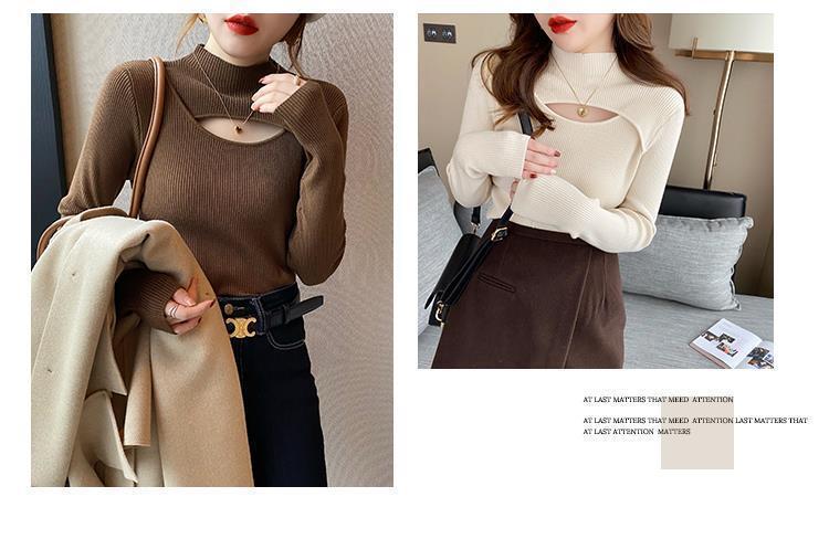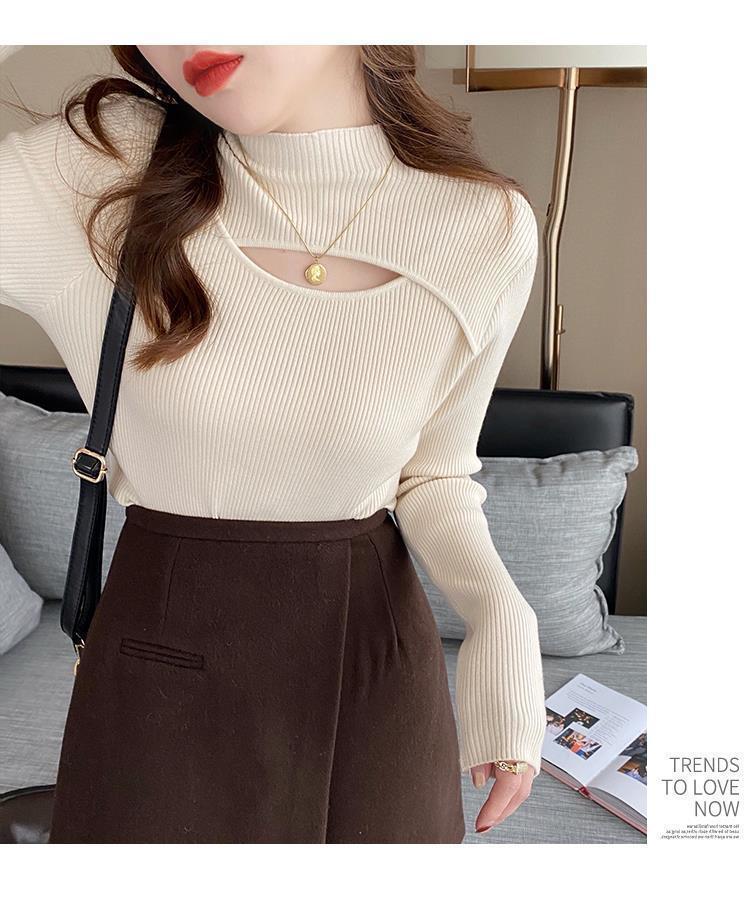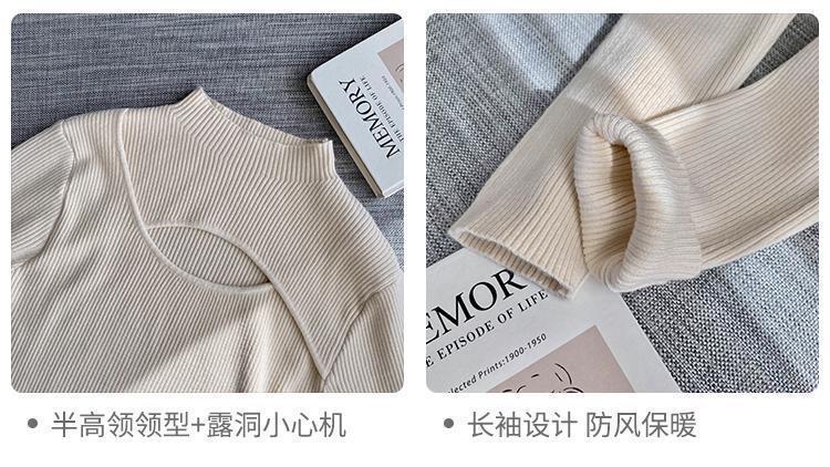 半高领打底衫女秋冬2022新款镂空设计感小众高级中领毛衣针织上衣