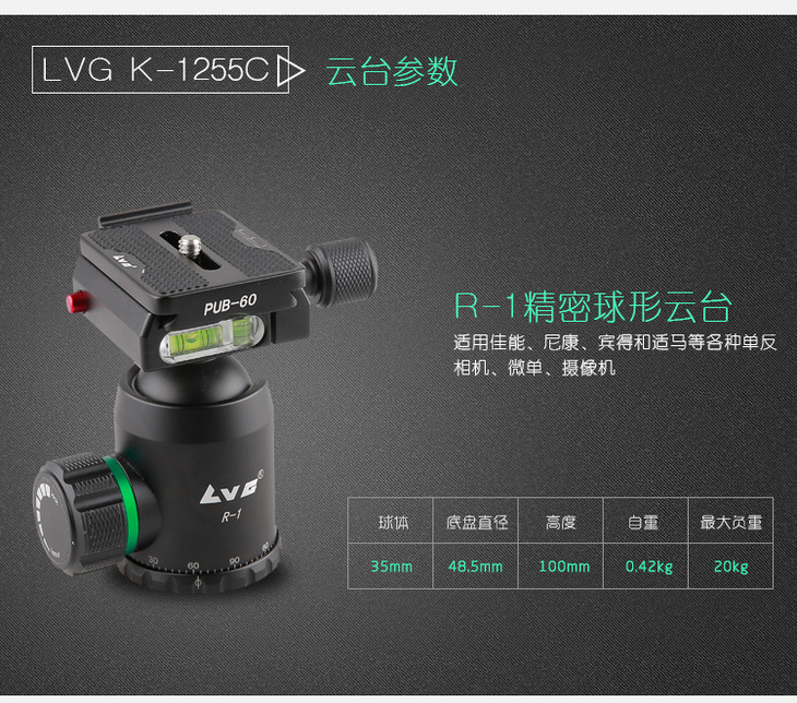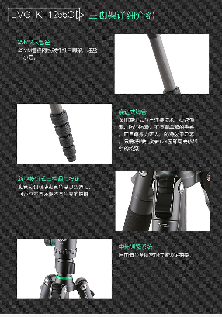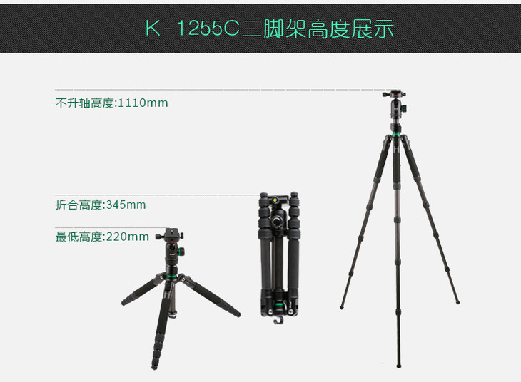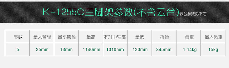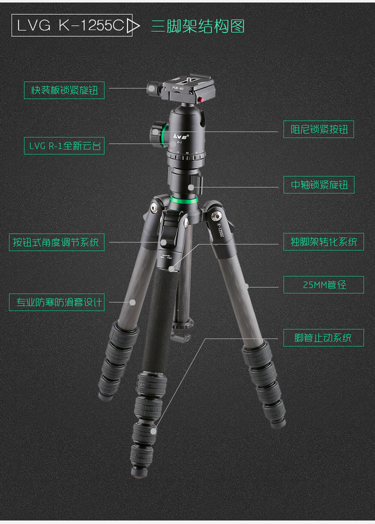 狼族优选丨 碳维5节25管承重15KG可拆独脚架便携三脚架(K-1255C+R-1云台套装)