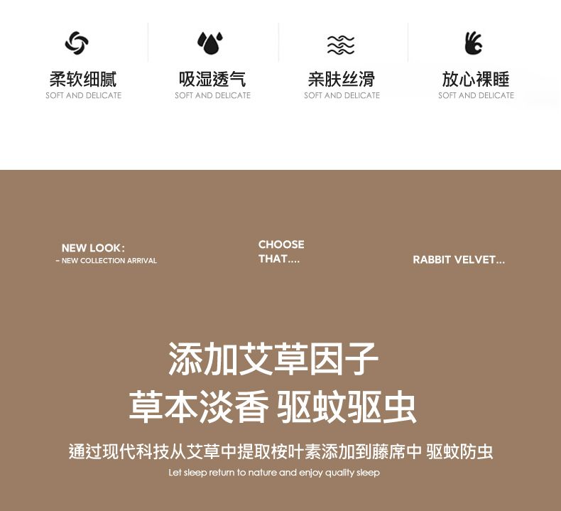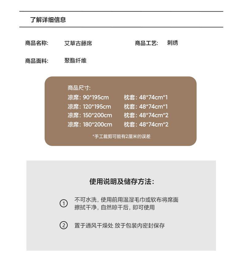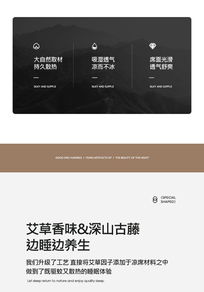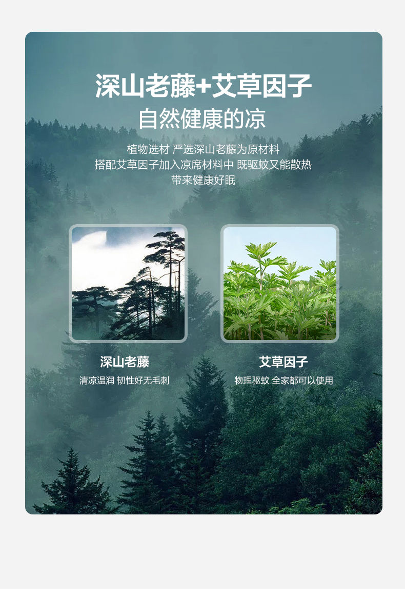 艾草驱蚊席古藤席家用宿舍空调软席可折叠宿舍凉席