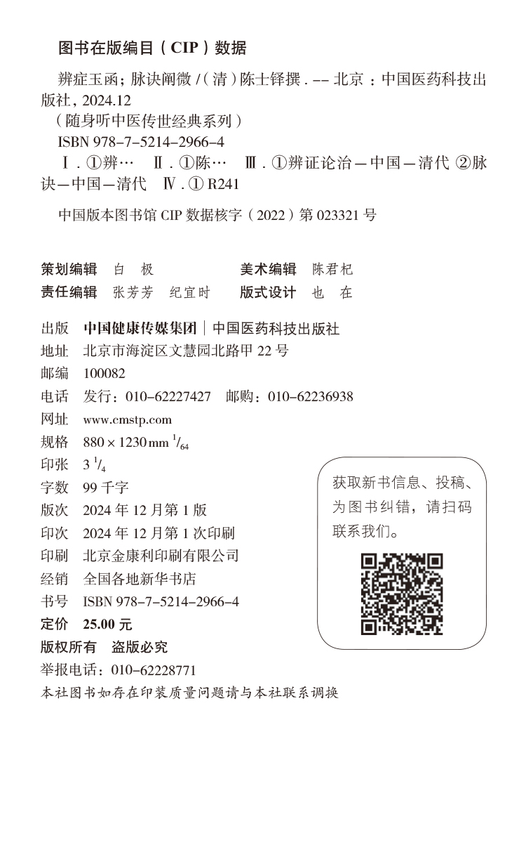 书名:辨证玉函 脉诀阐微(随身听中医传世经典系列)