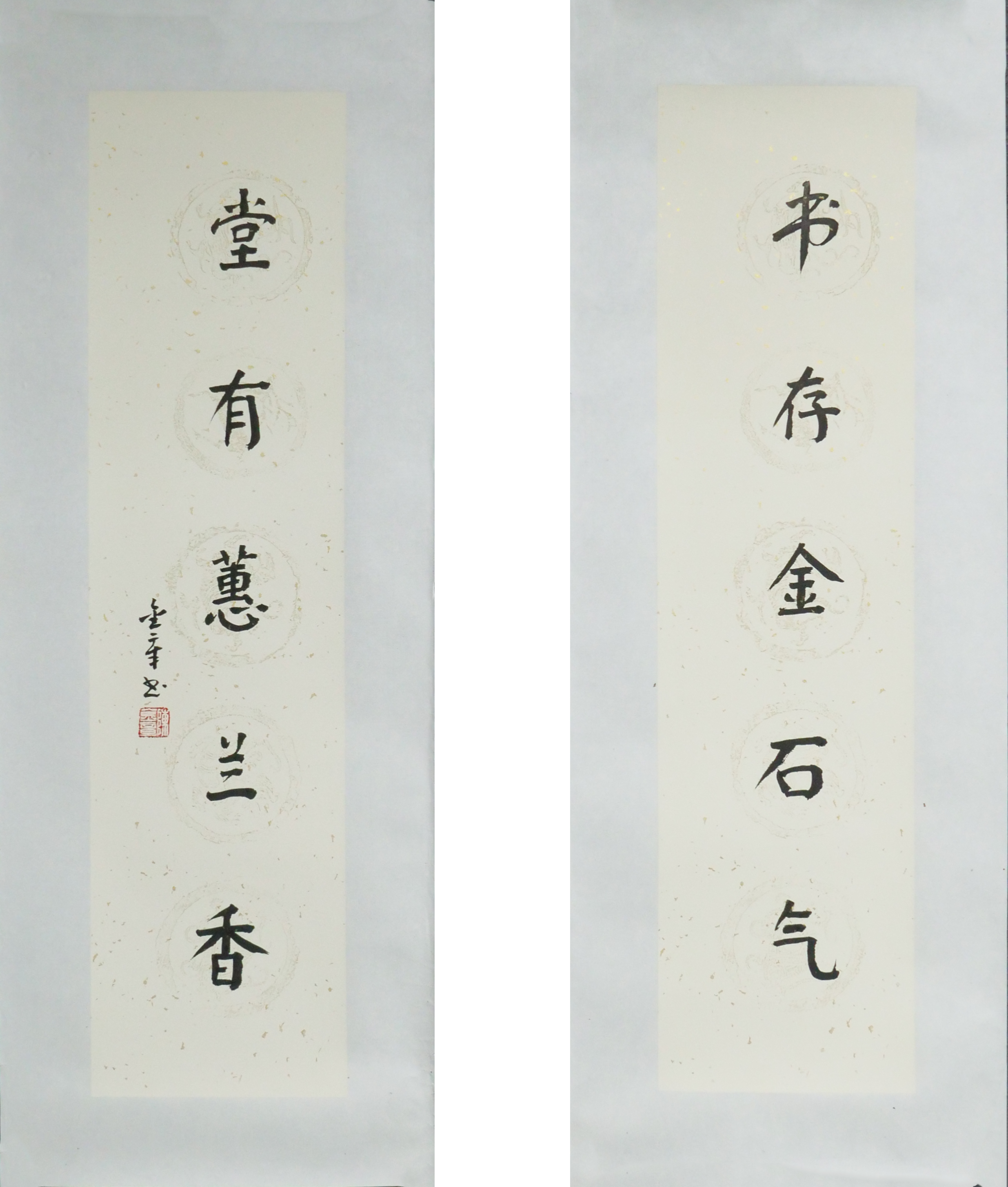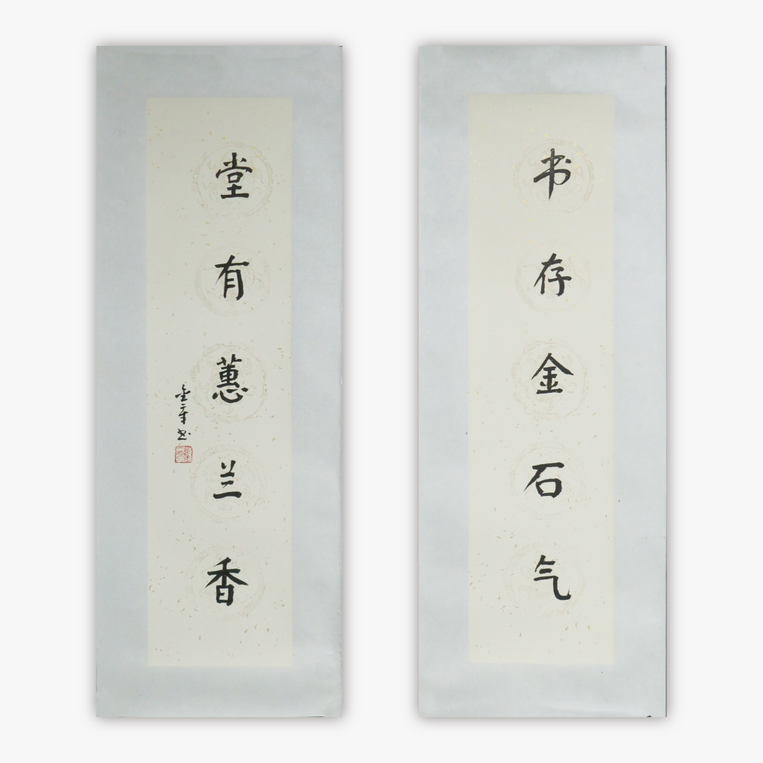 陈金章《书存金石气 堂有蕙兰香》书法原作67CM*17CM手写宣纸对联