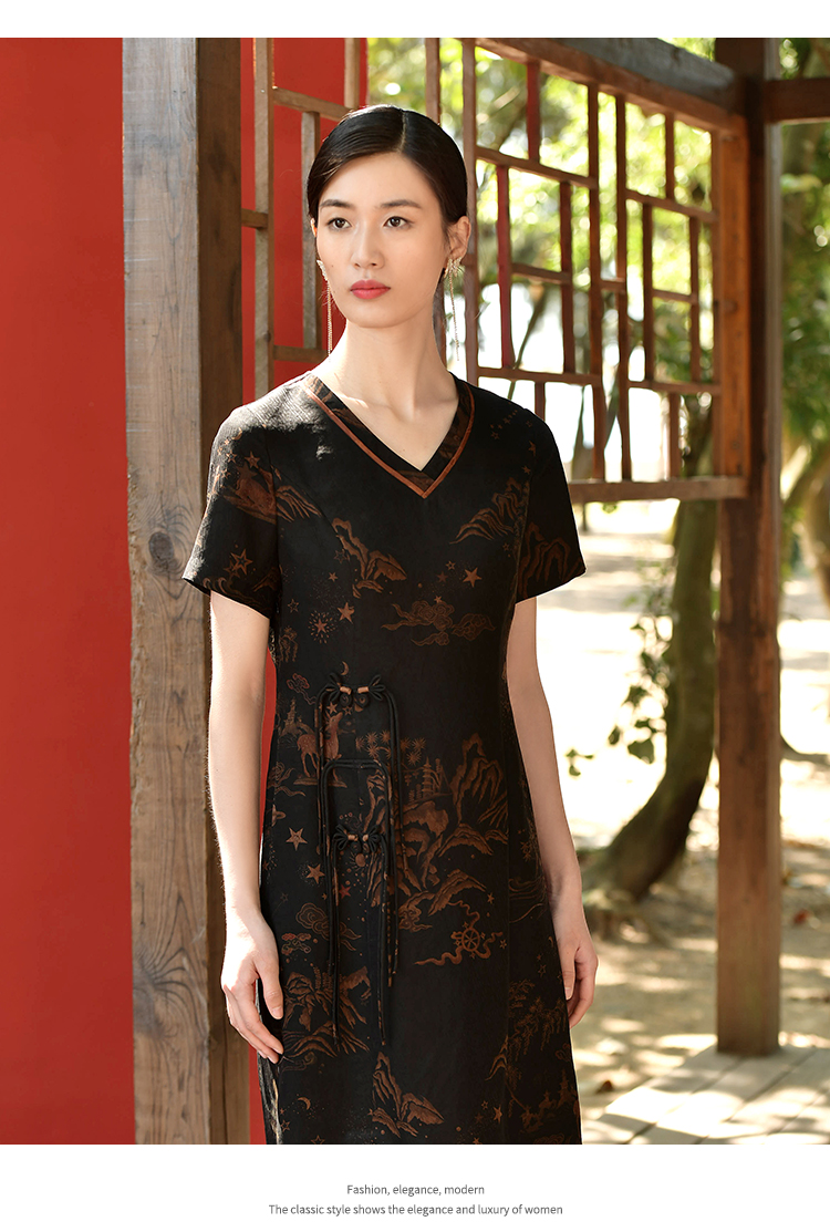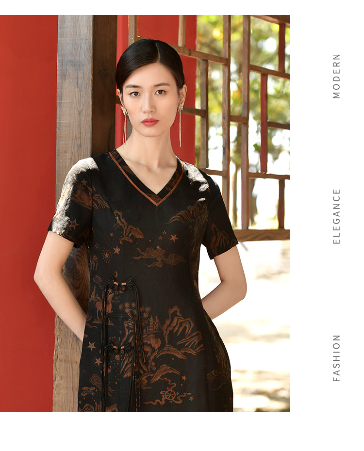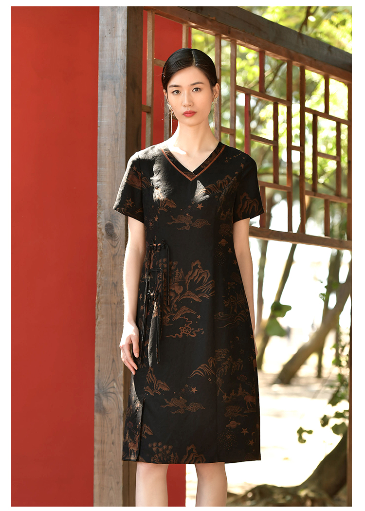 佐尔美夏季新款 国风优雅桑蚕丝真丝连衣裙女E32LS27