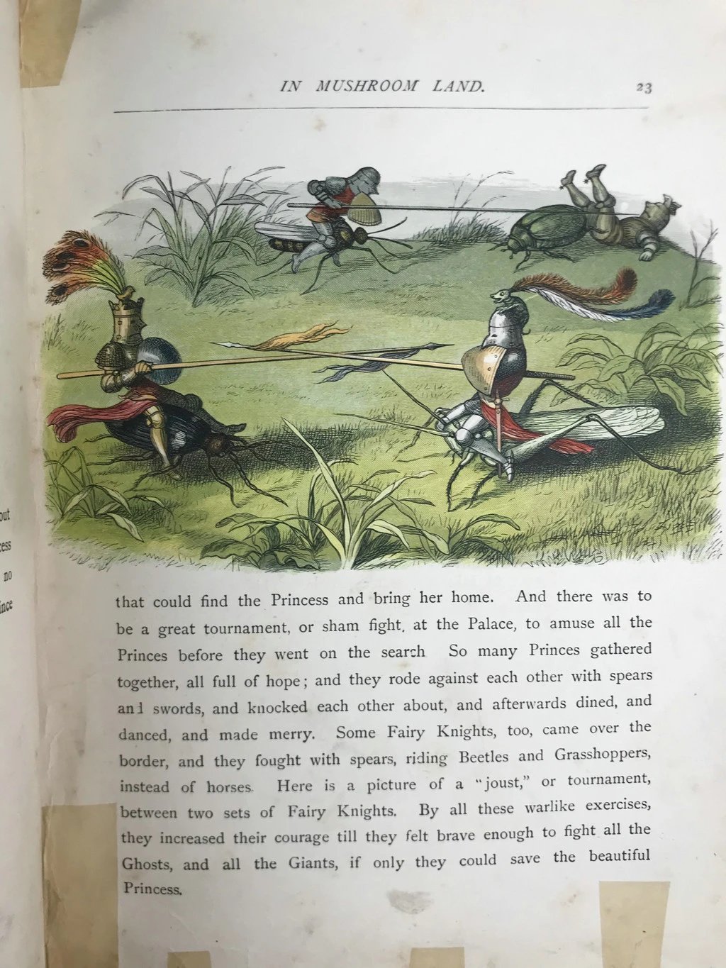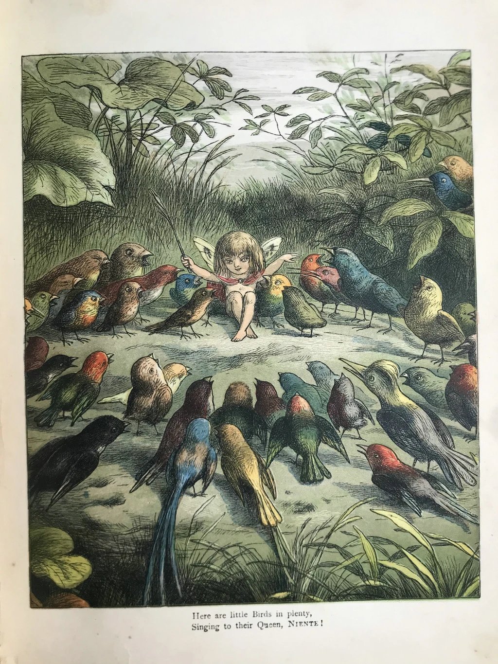 本书出版于19世纪末,彩色印刷技术并未大范围普及,理查德·道尔的原版插图本为无色版,但有幸遇到了英国雕版大师——Edmund Evans (1826–1905) ,他被誉为维多利亚时代彩色印刷的先驱,通过创新的多色雕版技术,推动了彩色插图在书籍和出版物中的应用,对儿童绘本的发展产生了深远影响。Evans的技术贡献在于采用手工研磨调色和层层叠加的雕版印刷工艺,实现了色彩的细腻渲染,提升了印刷品的艺术价值。这一创新不仅使彩色印刷逐渐成为主流,也为后来的儿童文学插图奠定了基础。