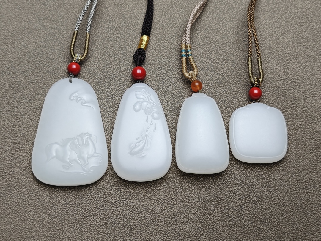 青海料的水透和俄料之白细,和田玉料的润泽光,都很美。
