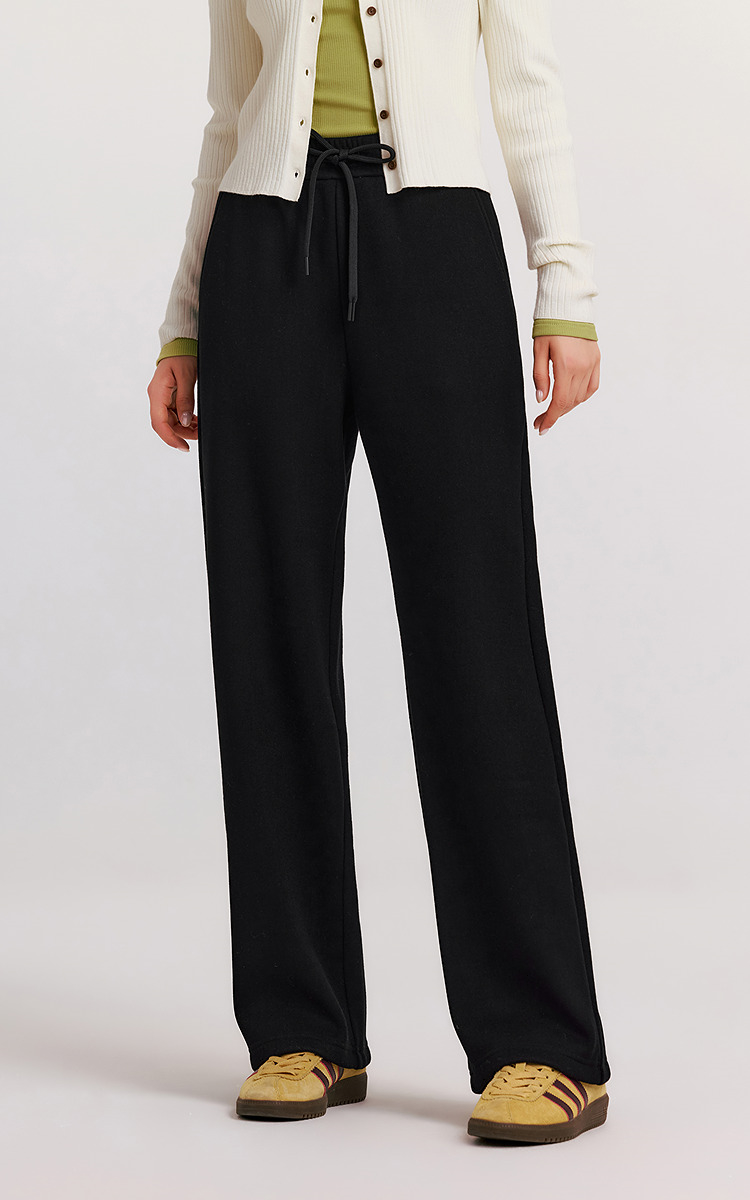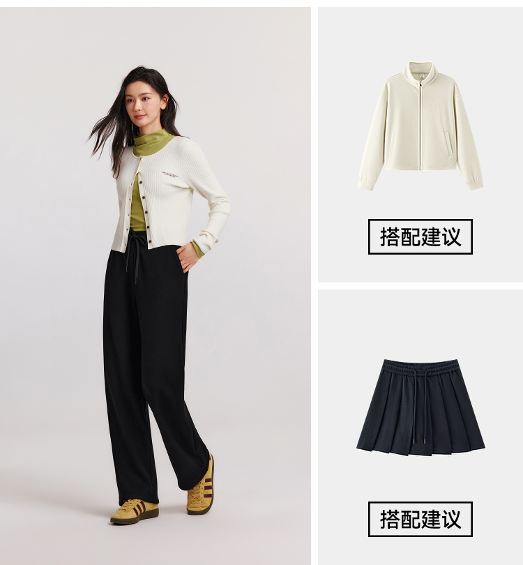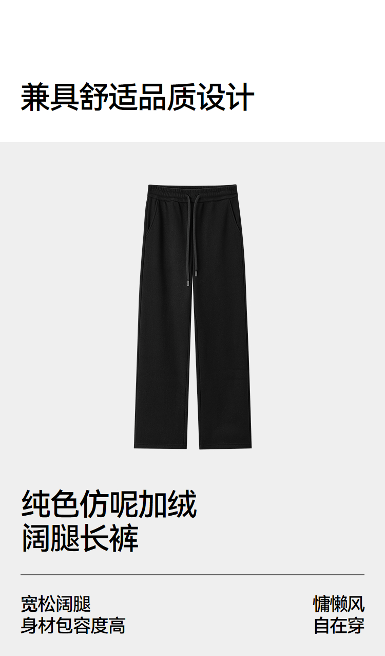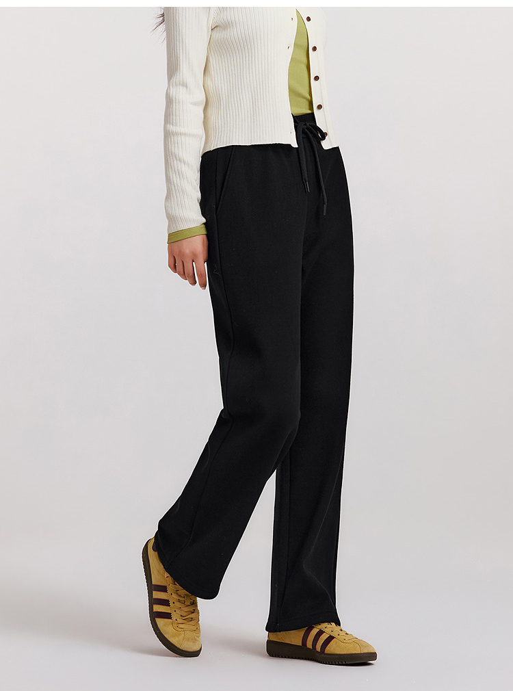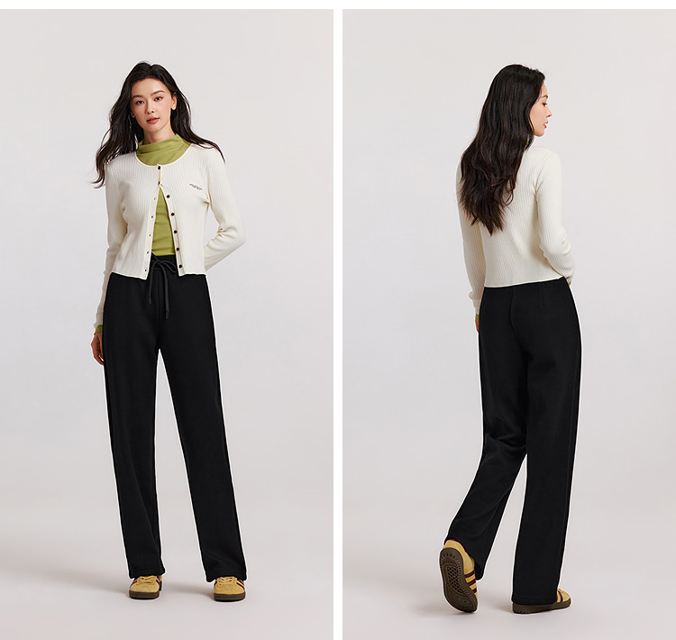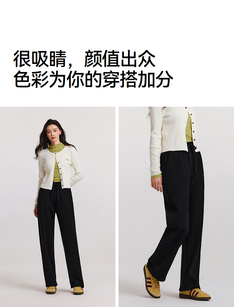 [商场同款]森马休闲裤女纯色仿呢阔腿裤冬季2024新款加绒长裤气质