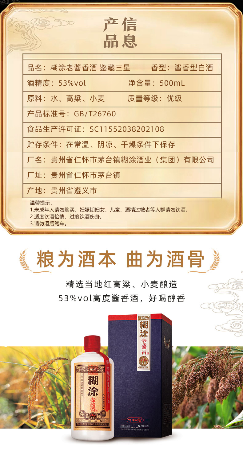 百年糊涂老酱香鉴藏三星53度酱香型500ml(询客服领取优惠)