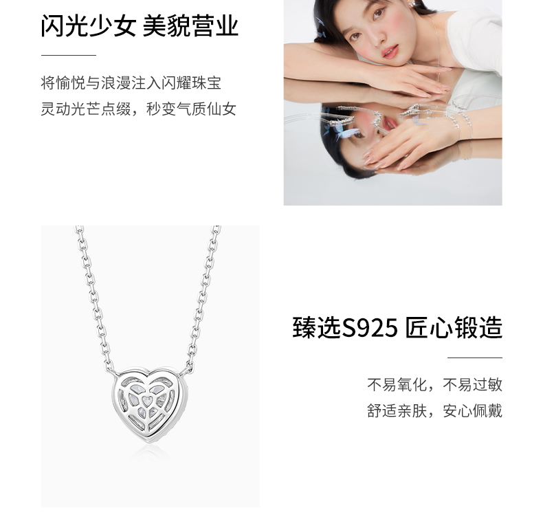 KADER卡蒂罗 璀璨之心项链 925银闪耀爱心璀璨吸睛设计可调节锁骨链 灵动耀眼梦幻精致约会穿搭配饰 女生礼物