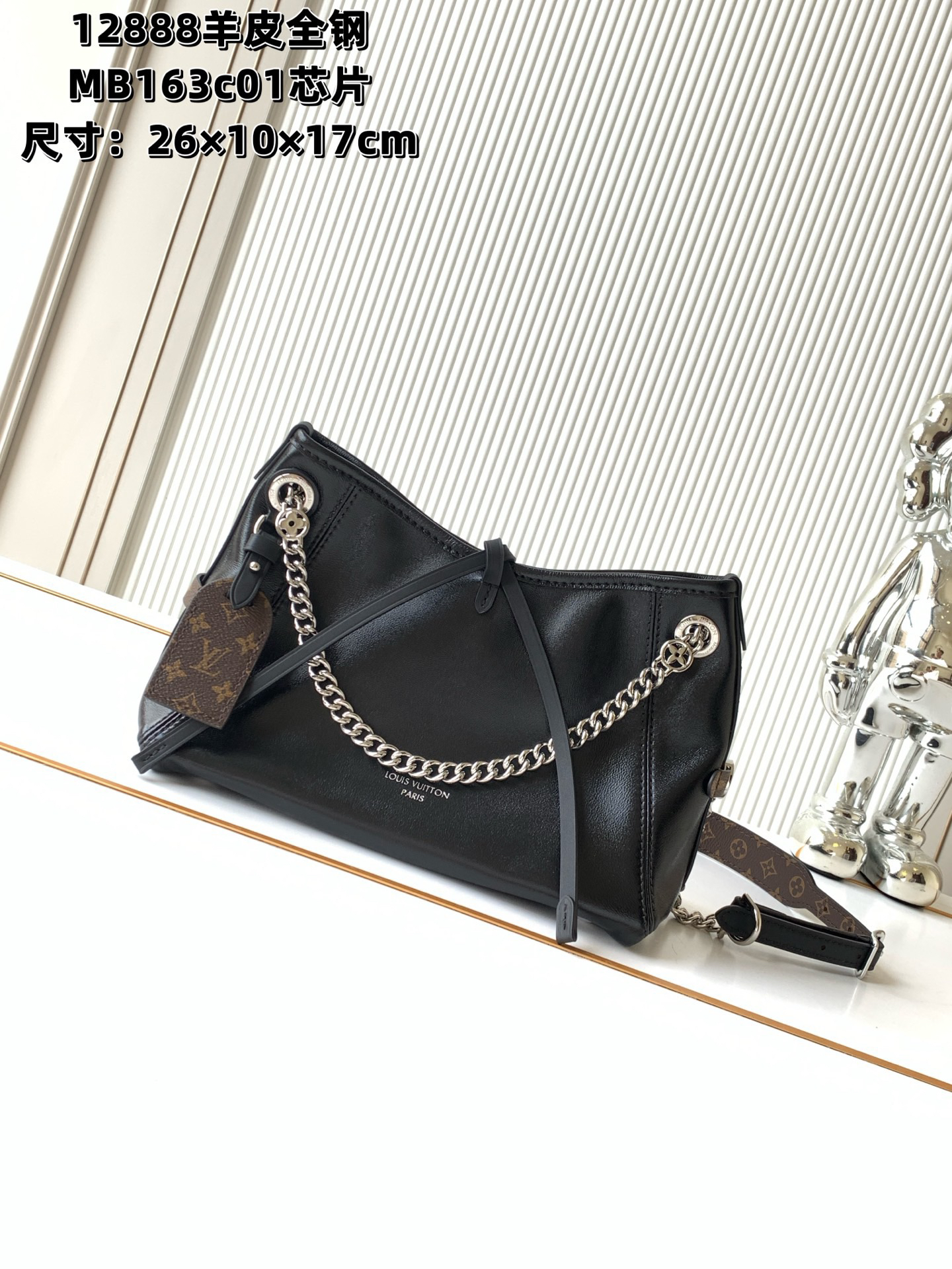 秋冬特惠💰1290 渠道级LV【全钢五金 MB163c01变码芯片】te级LV 全套包装 M12888黑色羊皮CarryAll BB 手袋以利落线条勾勒丰盈轮廓,为经典羊皮革点缀亮泽 Monogram 花卉金属链条,与 Monogram 帆布名牌碰撞瞩目反差。拉链内贴袋实现卡片和随身小物的便捷取放。