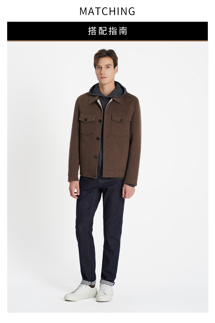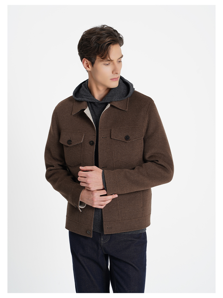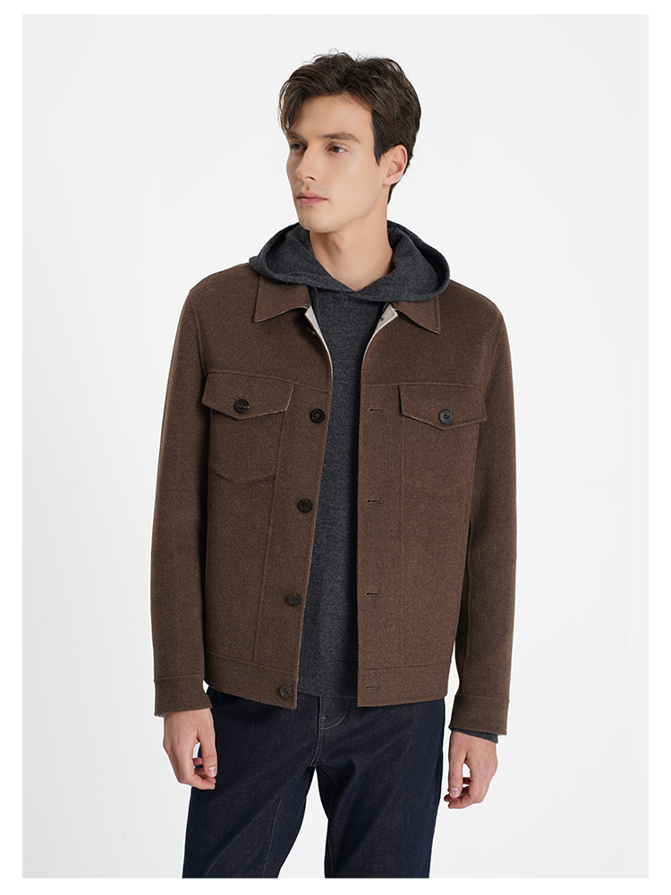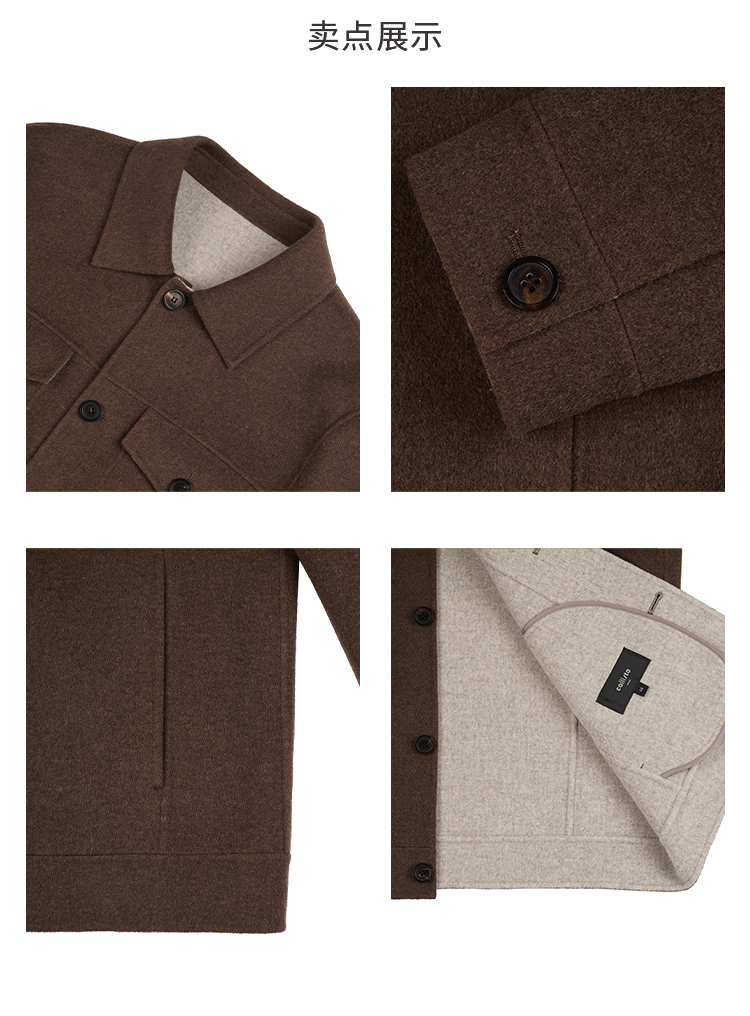 callisto乐行系列咖啡色绵羊毛双面呢夹克外套