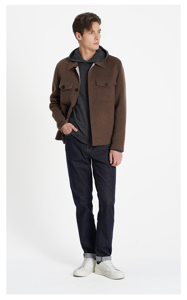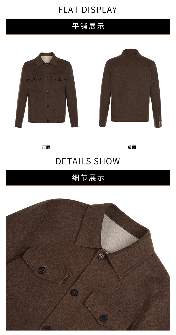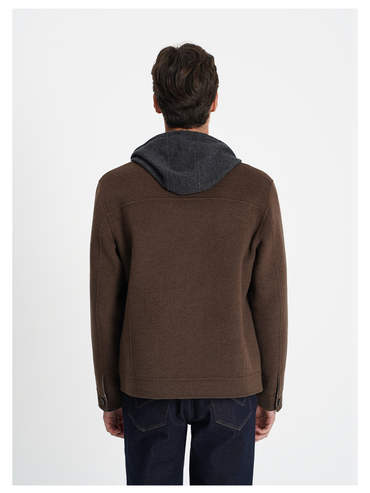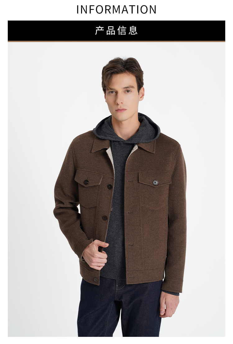 callisto乐行系列咖啡色绵羊毛双面呢夹克外套