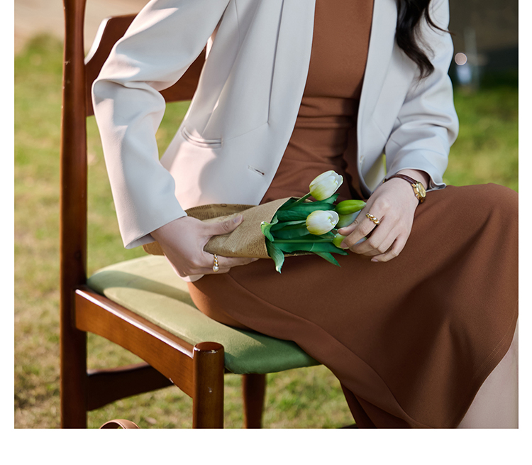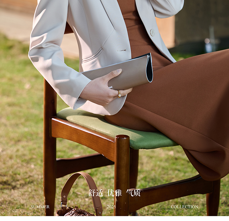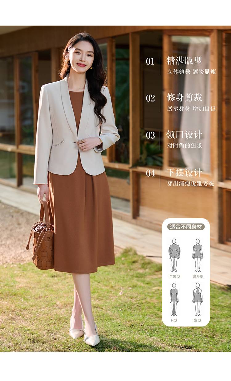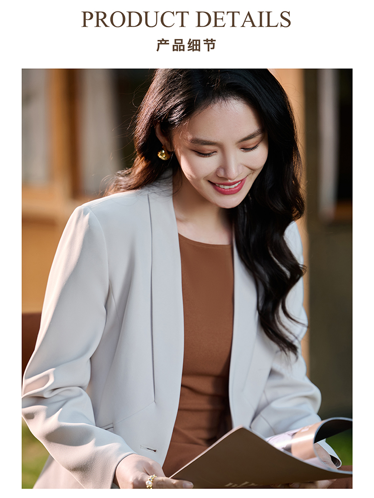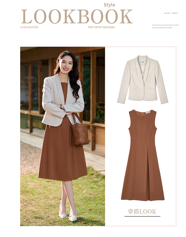 米思阳2026春季新款百搭极简无领小西装高级感职业通勤短外套+焦糖背心裙(单拍)5372/5371
