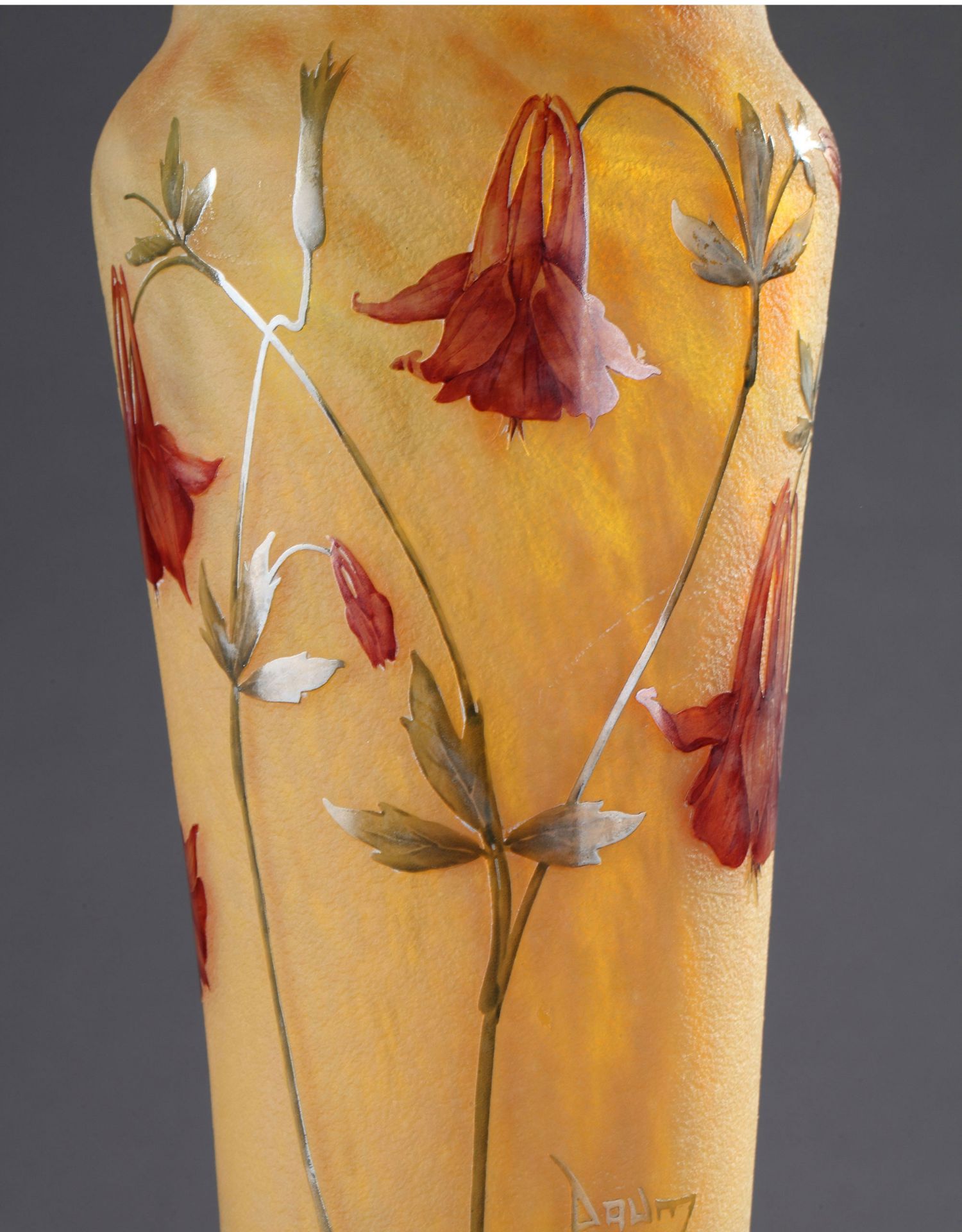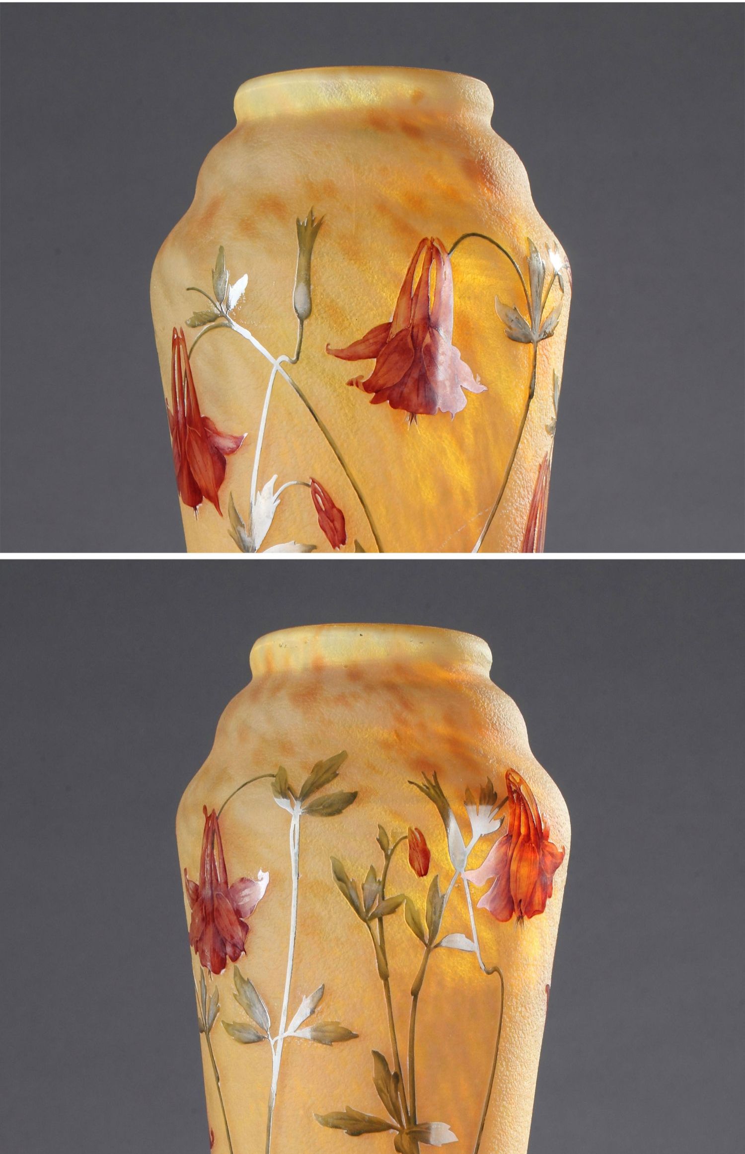独角鹿西洋古董耧斗菜主题珐琅装饰多层水晶瓶法国南锡派工坊签名