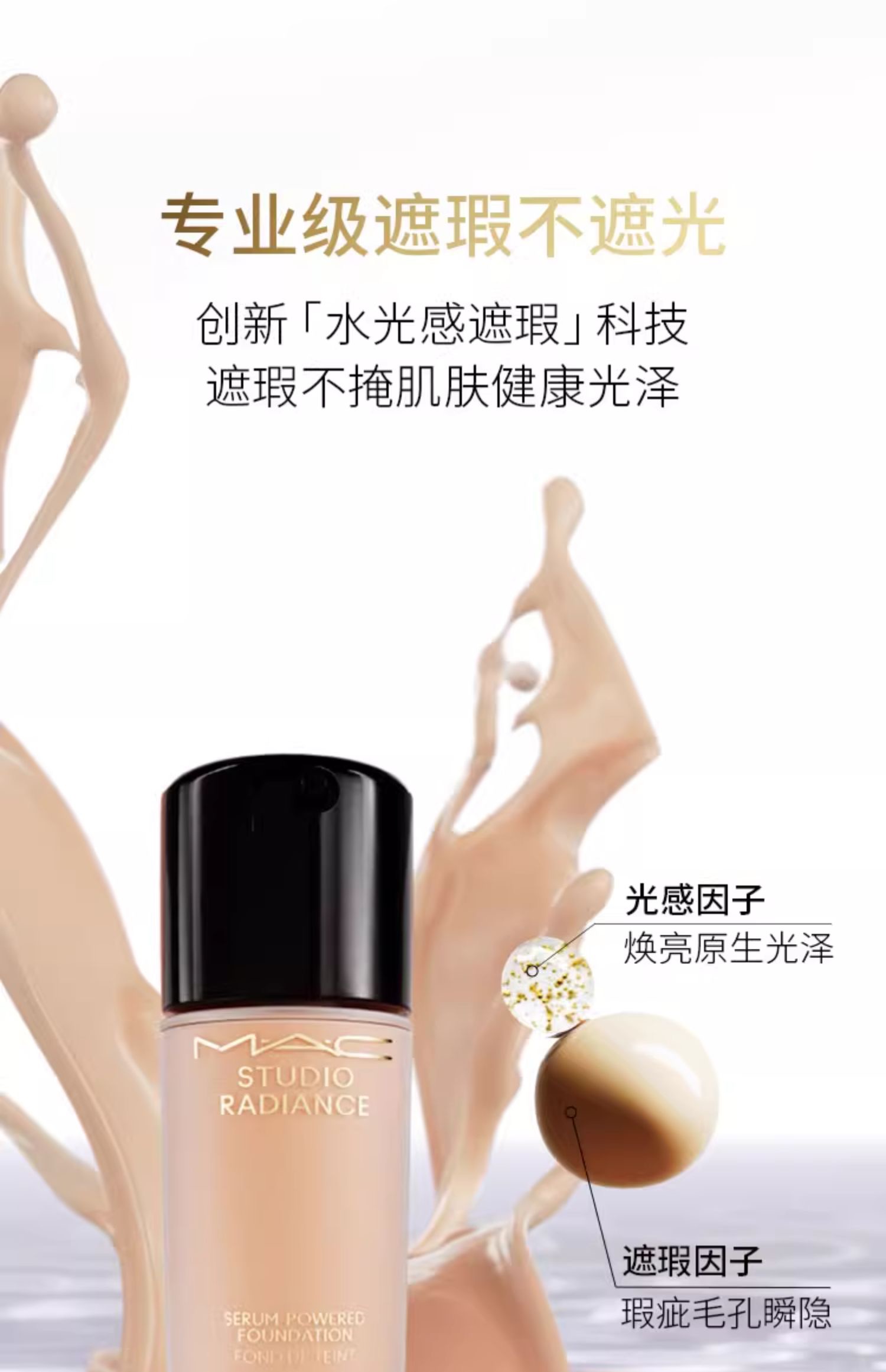 MAC/魅可聚光瓶粉底液遮瑕干皮保湿持久不脱妆 30ml
