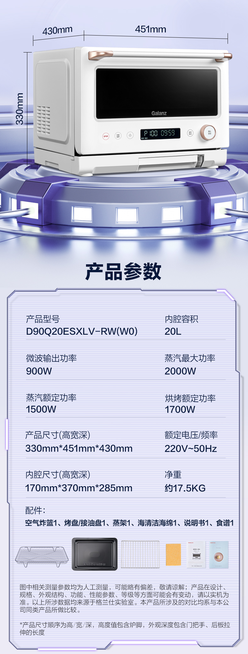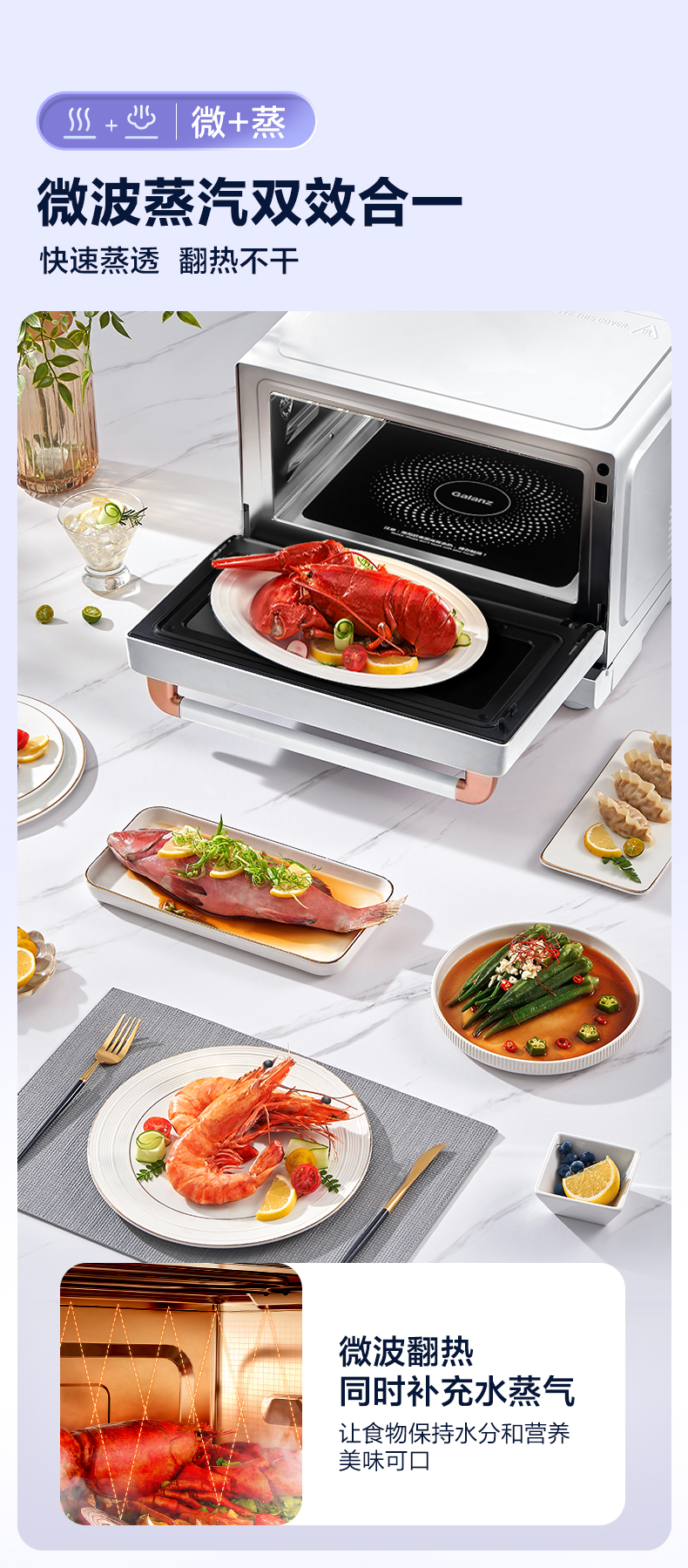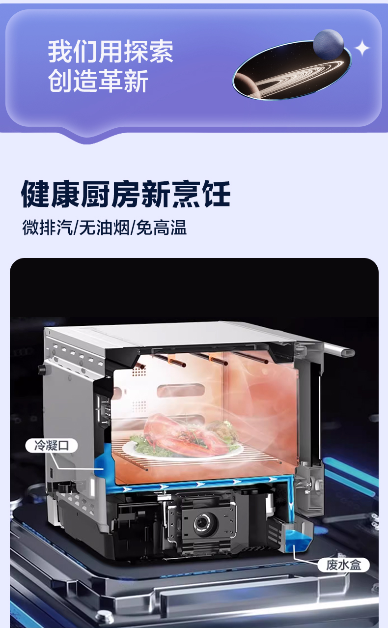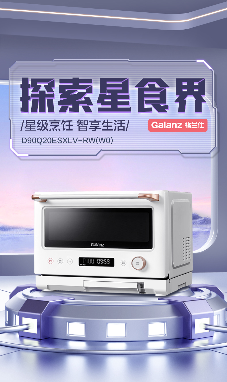 格兰仕微蒸烤炸一体机D90Q20ESXLV-RW(W0) 变频微波 一级节能直喷大蒸汽 20升容量不锈钢内胆空气炸微蒸烤