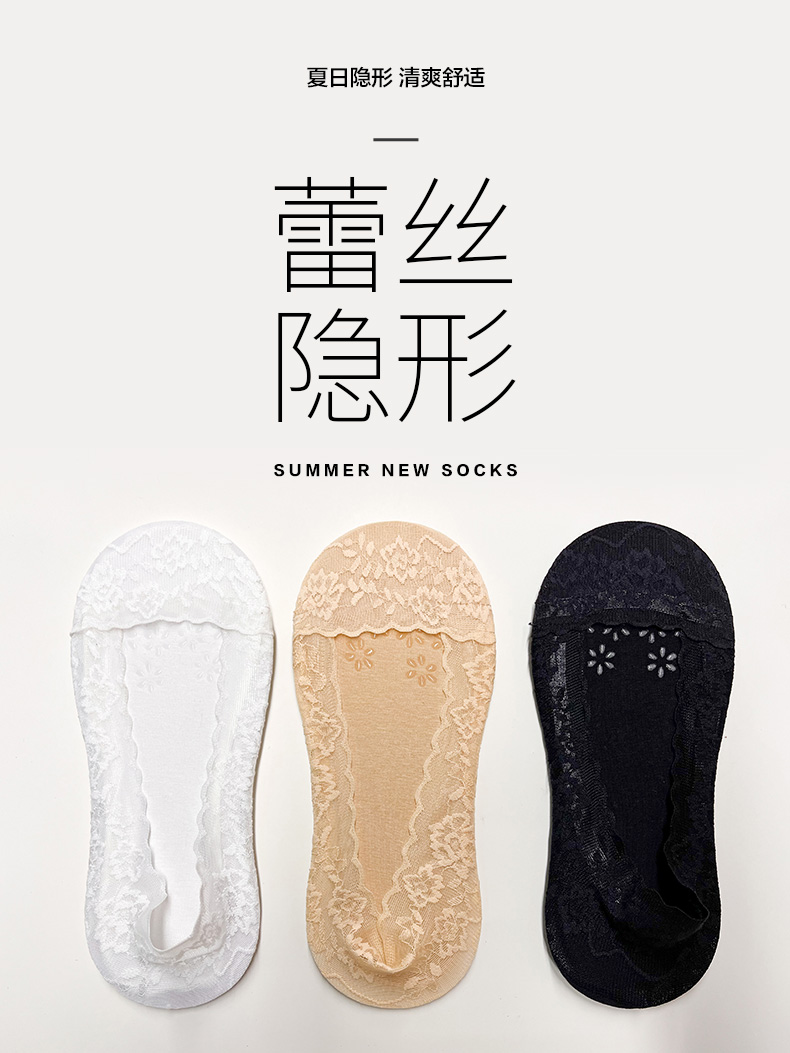 足装秀24夏季新品凉感高跟鞋超浅口防滑不掉跟薄款蕾丝隐形女袜子