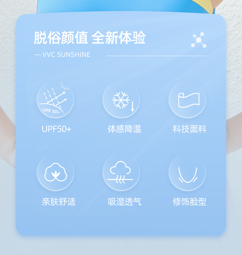 VVC防晒帽女空顶防紫外线全脸遮阳帽太阳帽子运动夏季骑车大帽檐