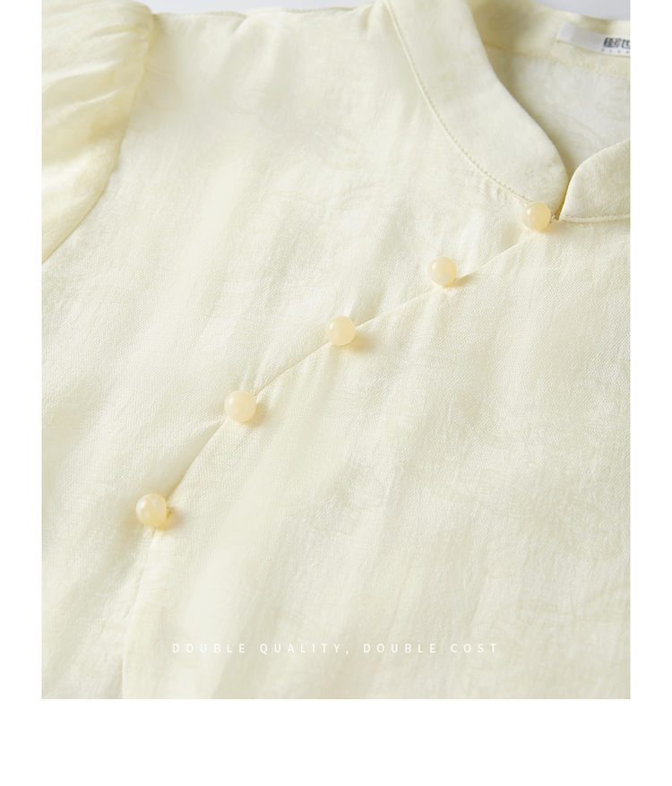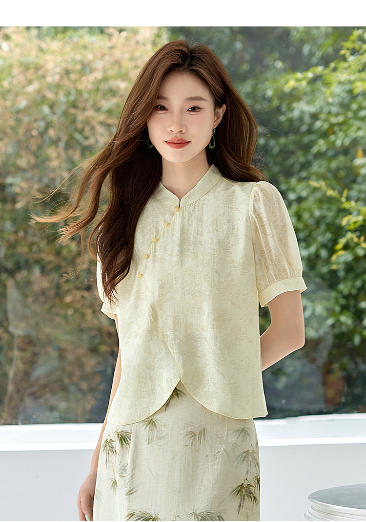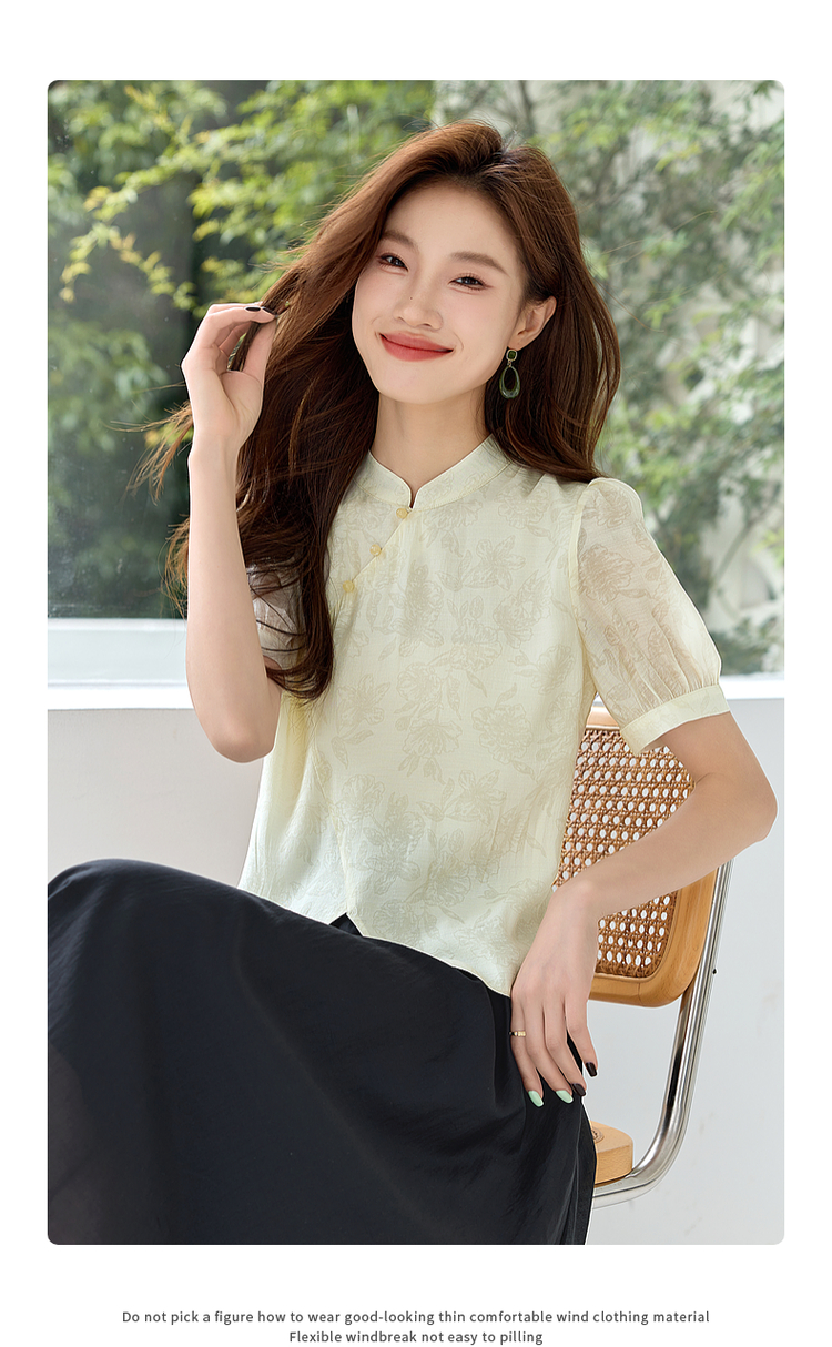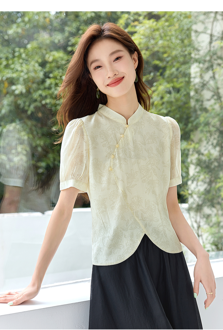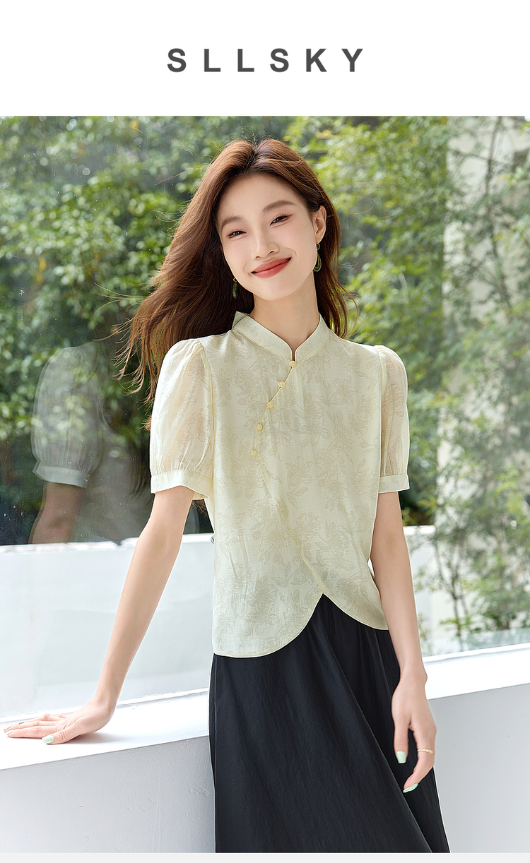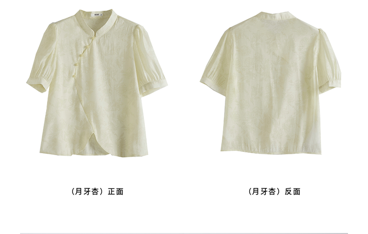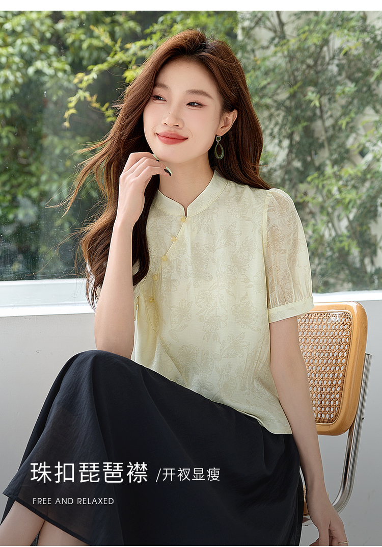 【五折购】熙世界2025夏女装新中式立领斜门襟扣暗纹提花国风短袖衬衫上衣