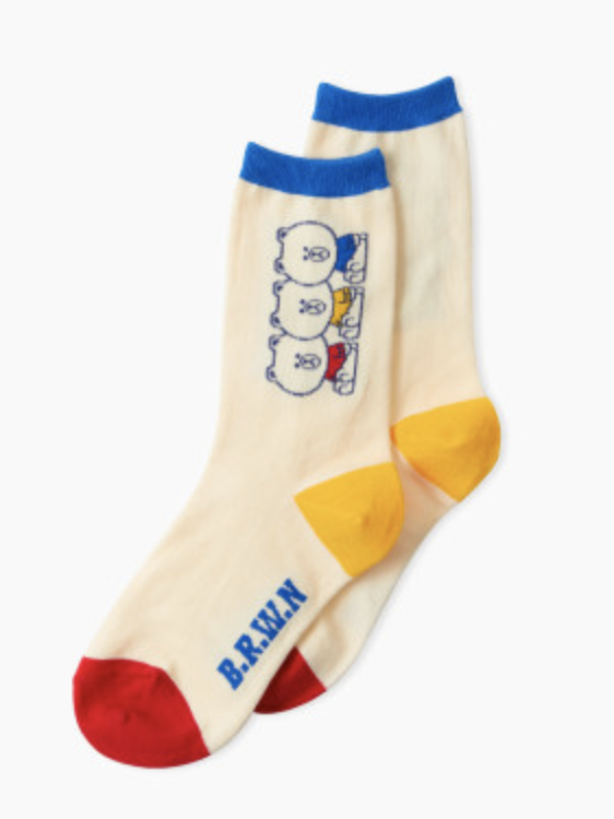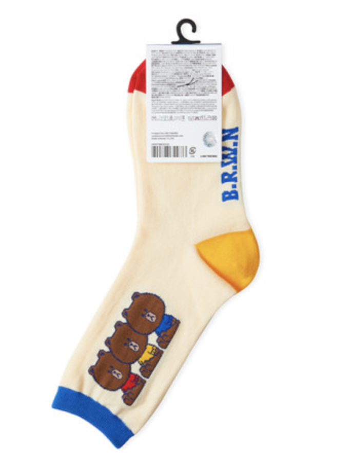 韩国 可爱 Line Friends布朗大学色块象牙色中筒袜JPY带授权招加盟代理