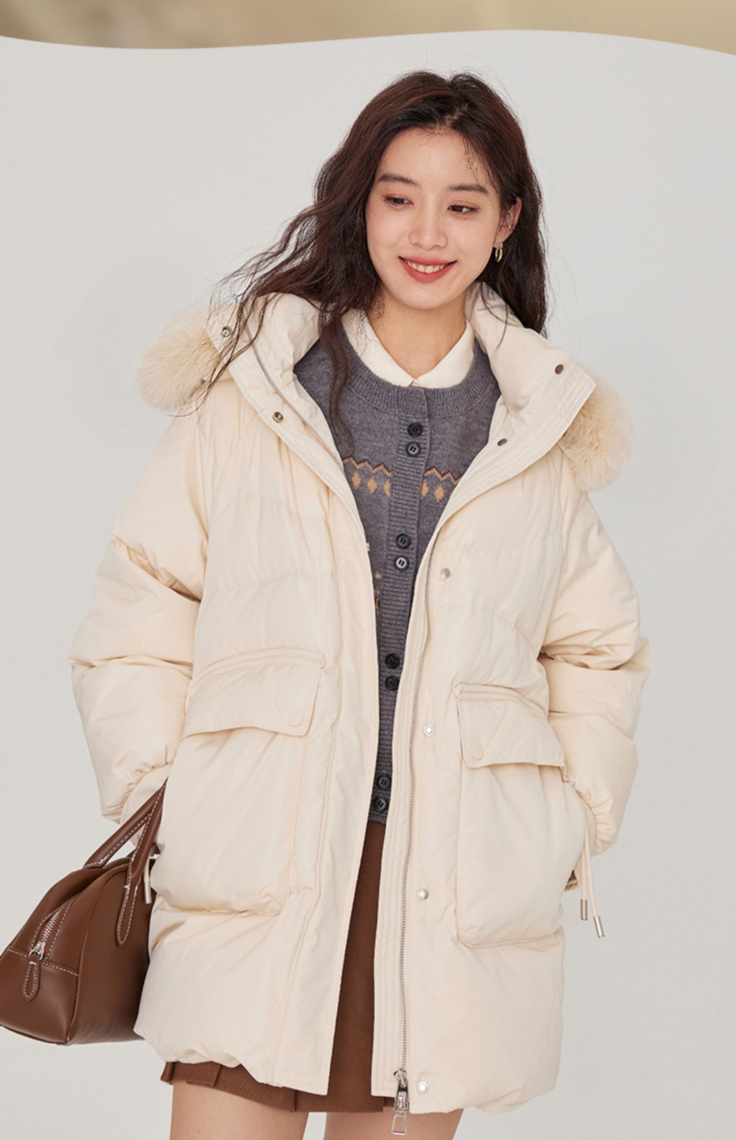 【年终特卖】熙世界小个子狐狸毛领宽松面包五防面料羽绒服女短款鸭绒外套2025冬季新款
