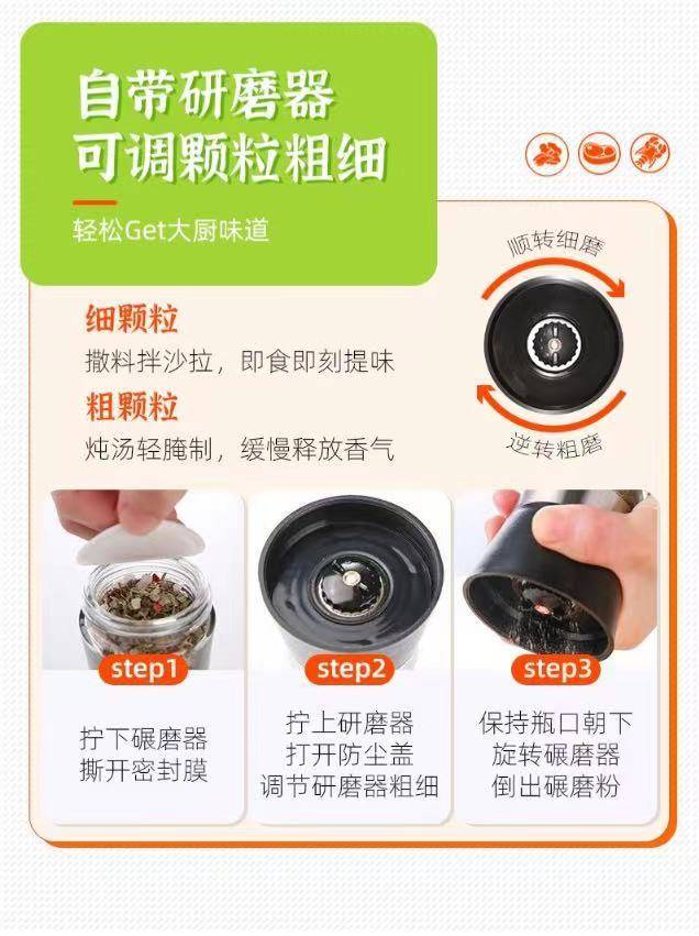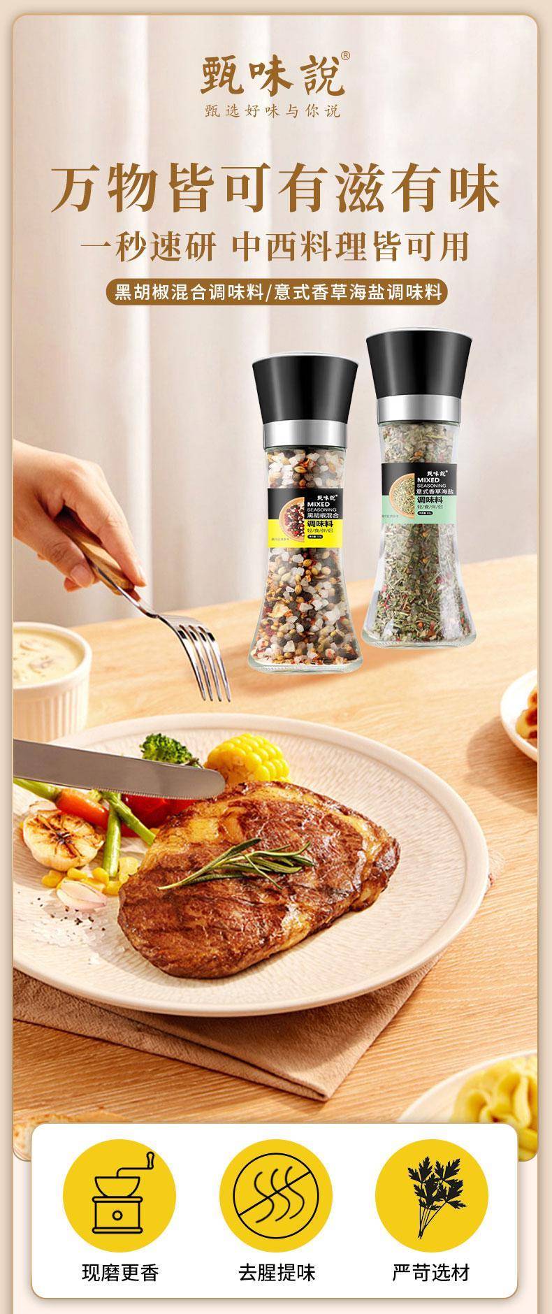 【秒杀】甄味说研磨料组合2瓶装(黑胡椒混合120g/瓶+意式香草海盐80g/瓶)