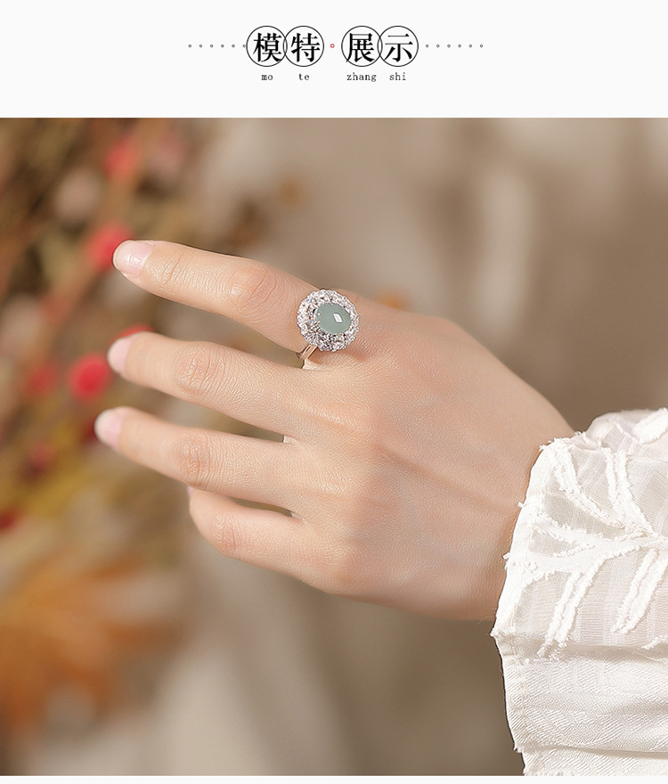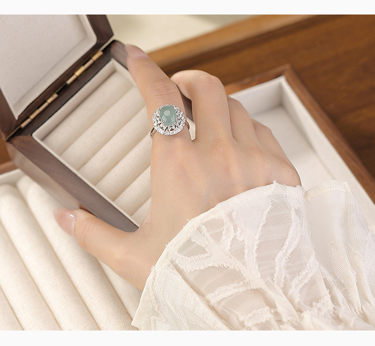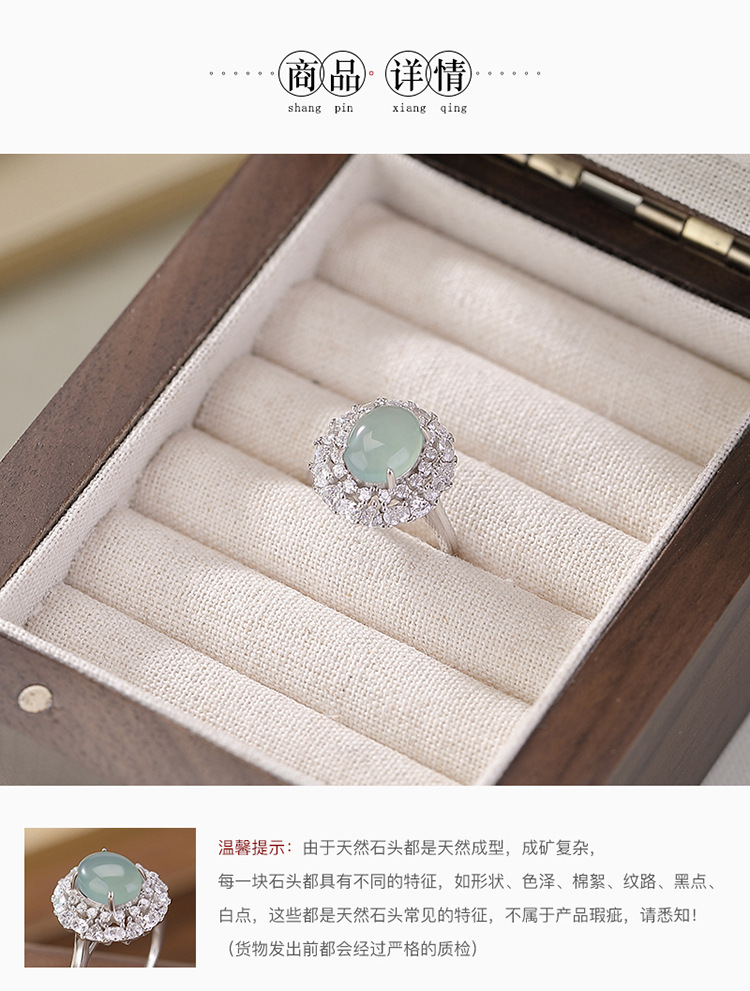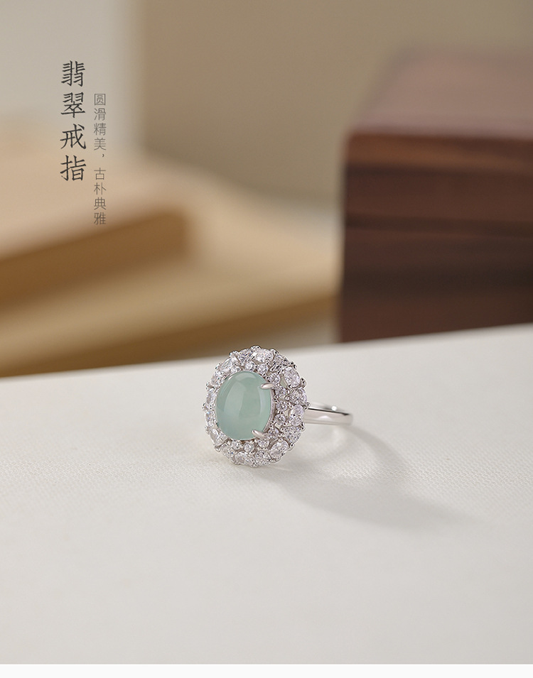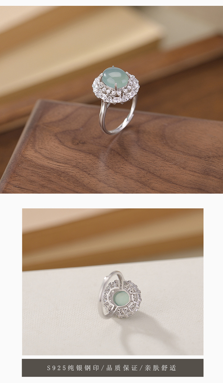 【海洋之遇】蓝水翡翠S925纯银蛋面镶嵌戒指【CW-JZ07006】