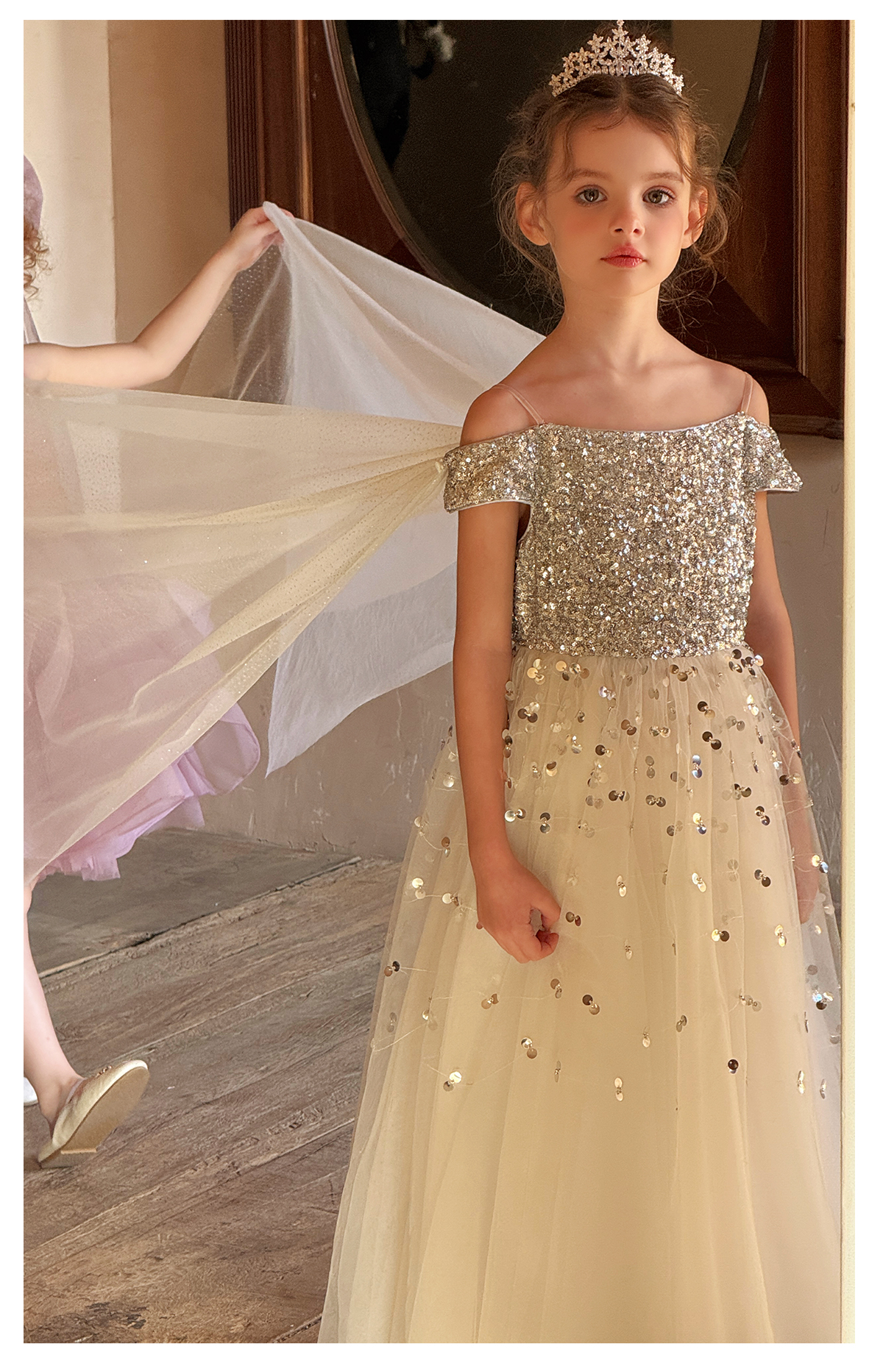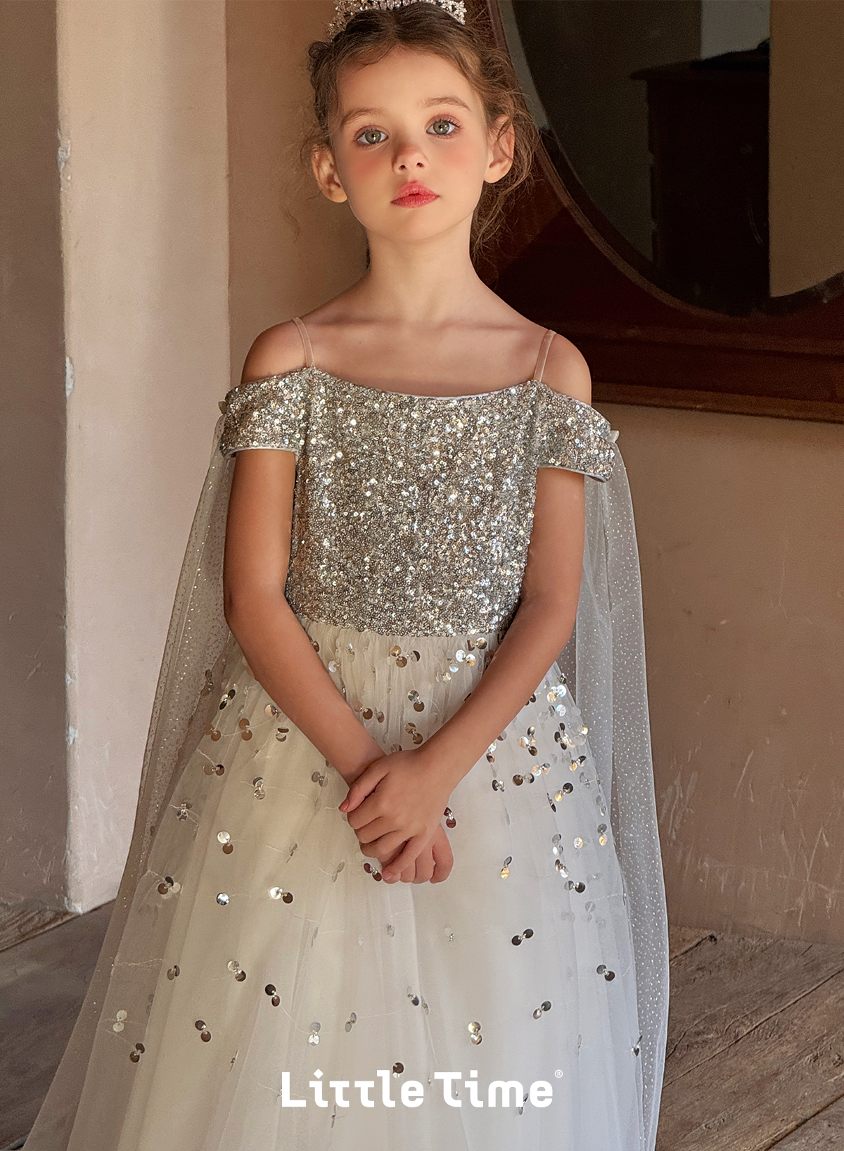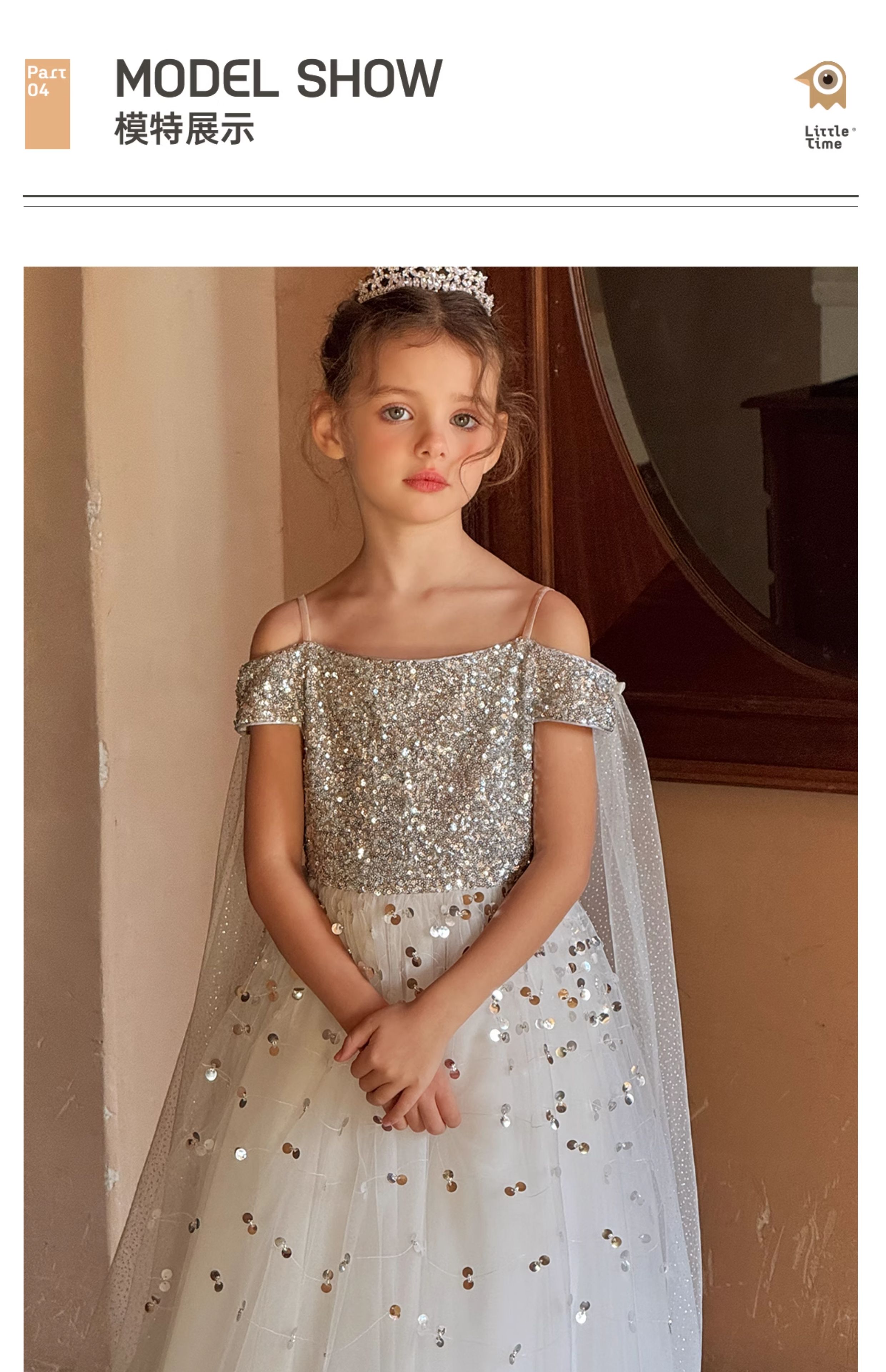 Littletime女童连衣裙2025春夏公主裙礼服儿童甜美网纱亮片蛋糕裙