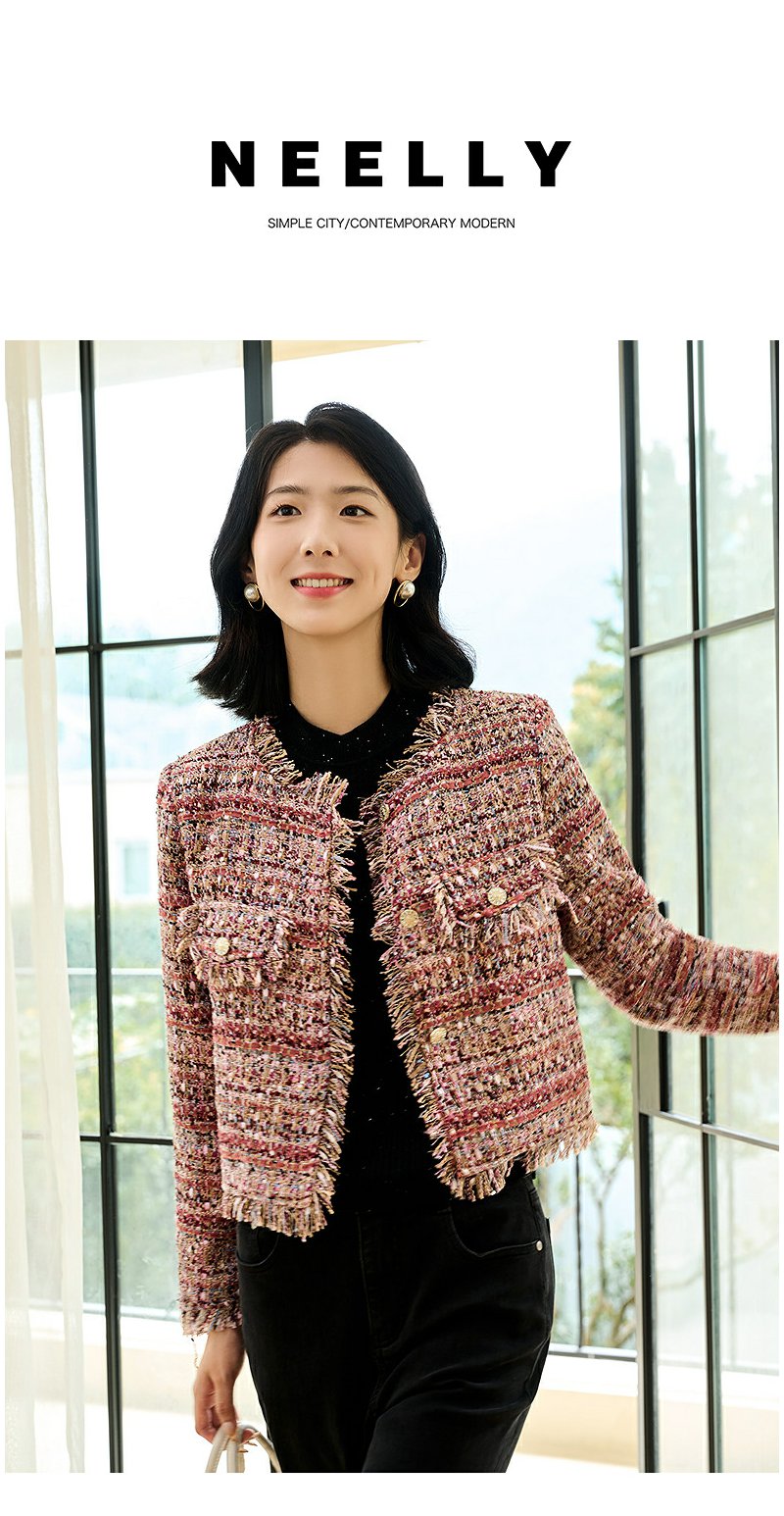 NEELLY纳俪商场同款冬季新款90白鹅绒羽绒服女保暖小香风短款外套N25104L04551
