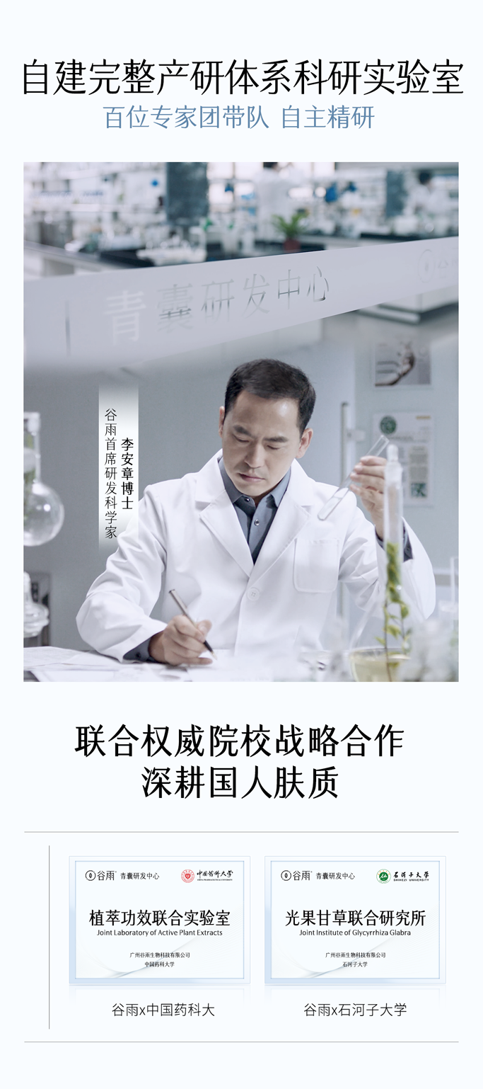 - 谷雨,更适合中国人肤质的植萃美白。专研中华珍稀美白植萃光甘草定,深入研究中国人肤质特点,打造中国女性独有的仙气白。