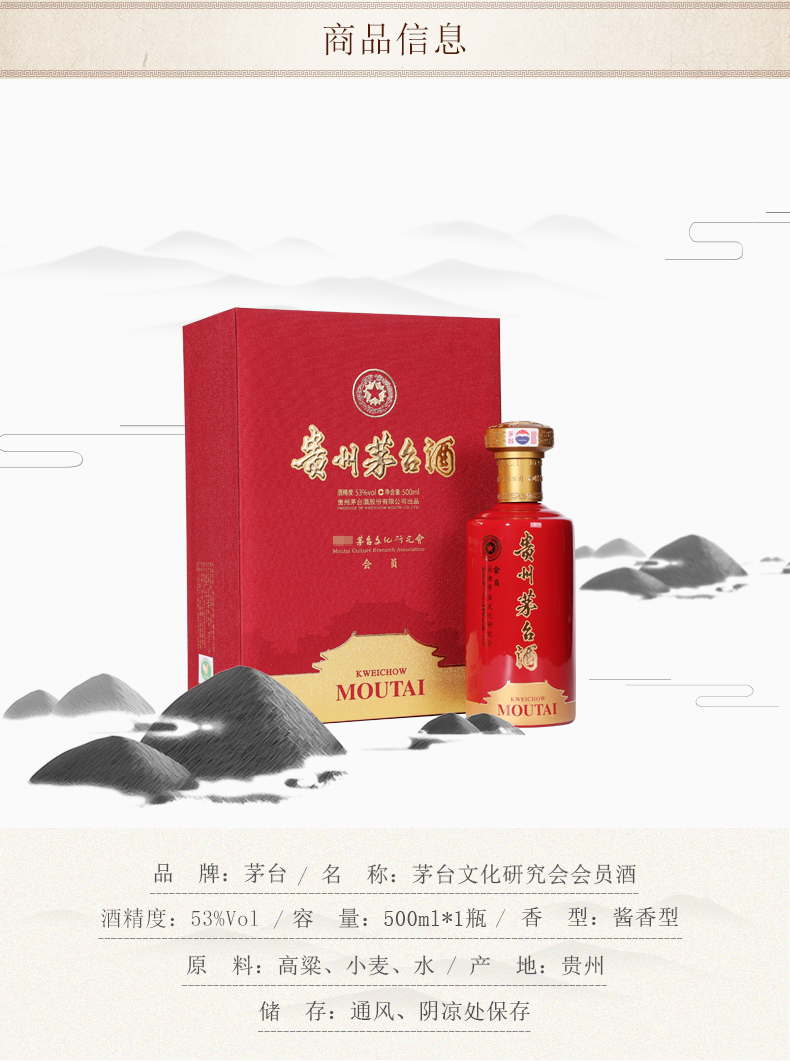贵州茅台酒 53度茅台酒 茅台文化研究会会员酒 酱香型白酒 500ml