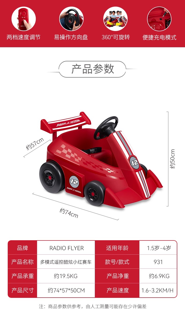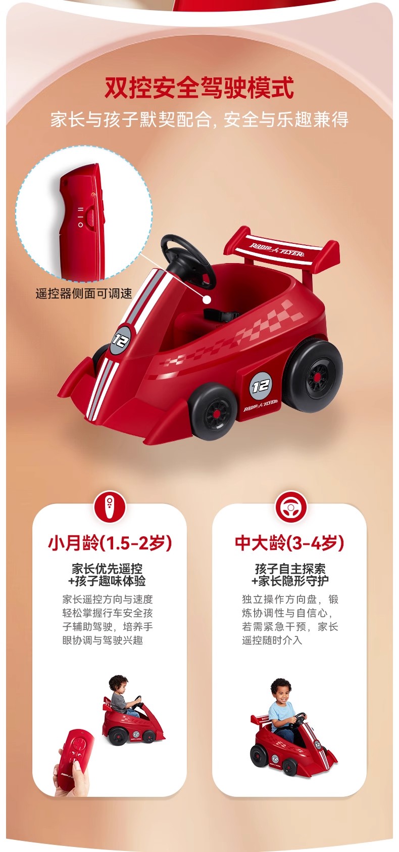 美国RadioFlyer卡丁车931型号 儿童遥控电动车卡丁车可坐人小孩玩具赛车 1.5岁-4岁