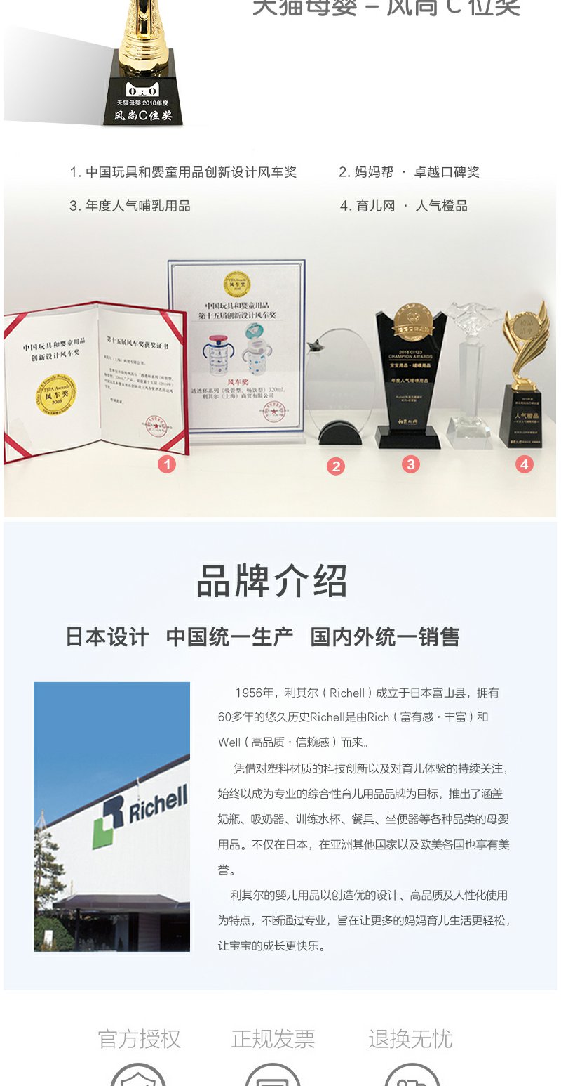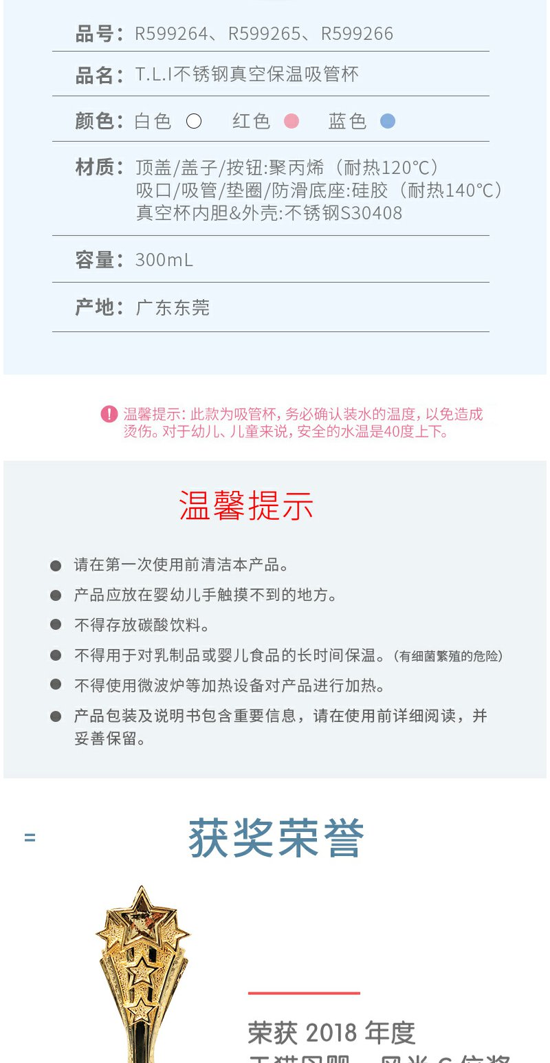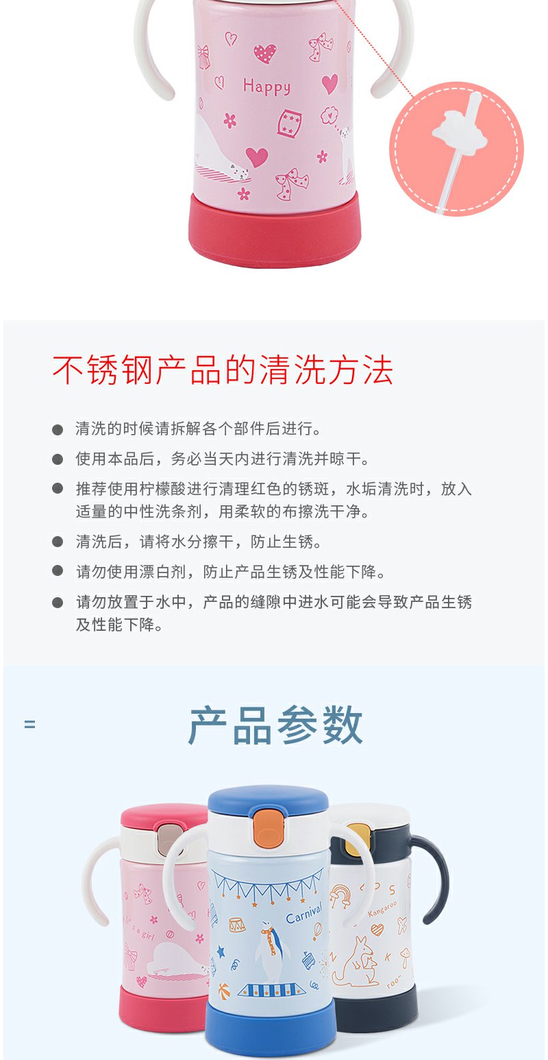 Richell利其尔儿童不锈钢保温杯带吸管 2019/2020款 300ml