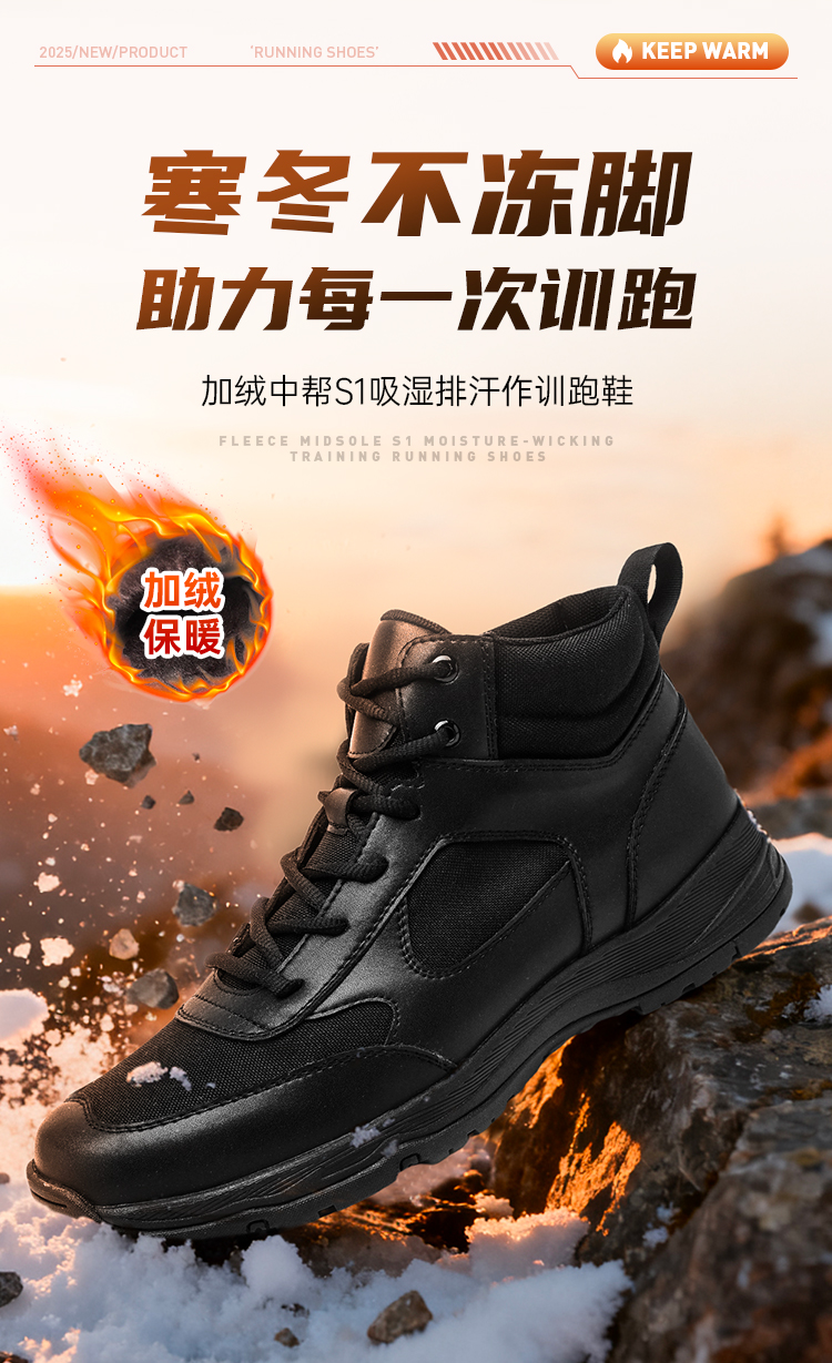 【实付满399送保温杯】【加绒中帮S1吸湿排汗训练跑鞋】保暖短绒户外运动跑鞋男款缓震休闲畅跑鞋