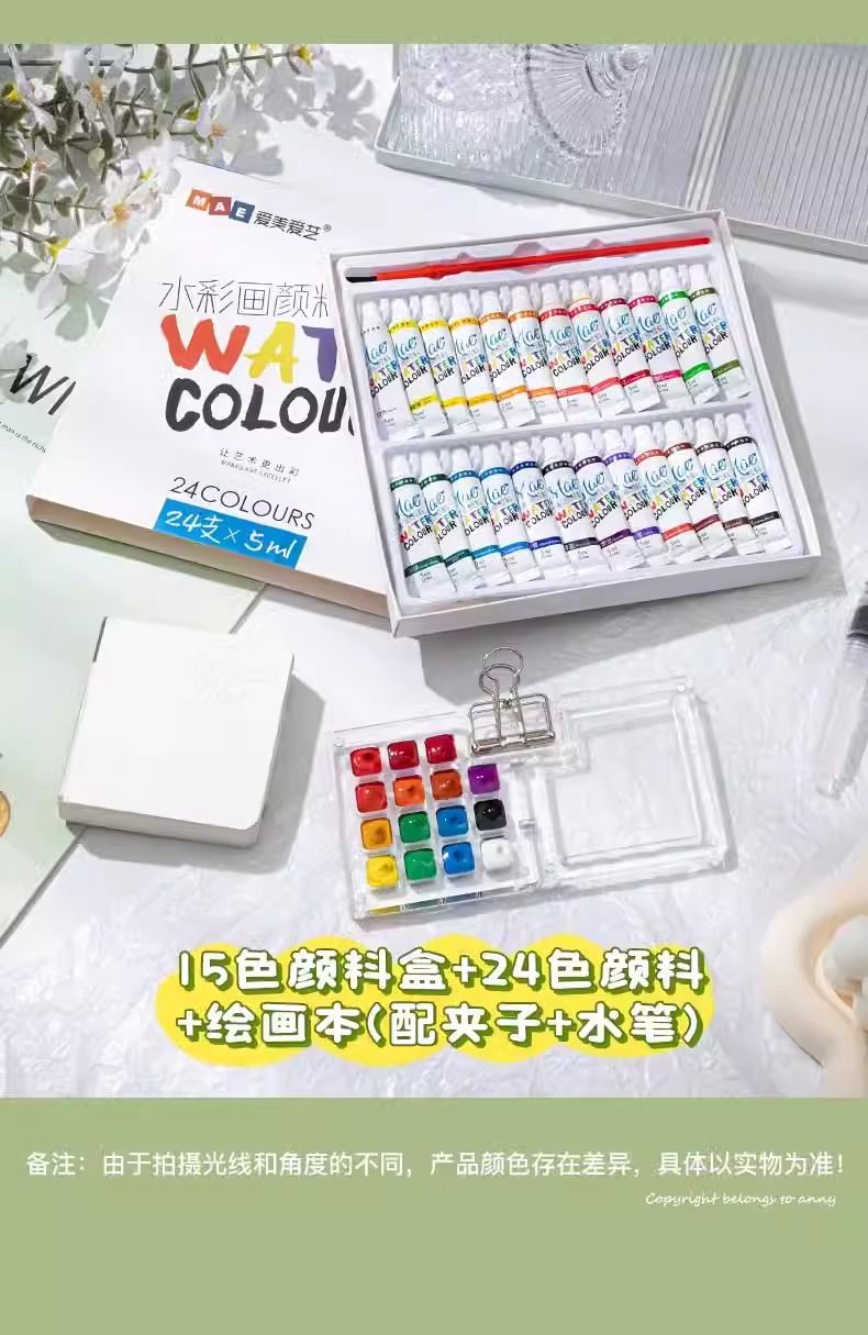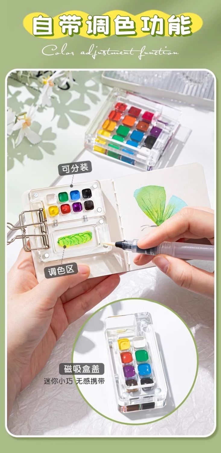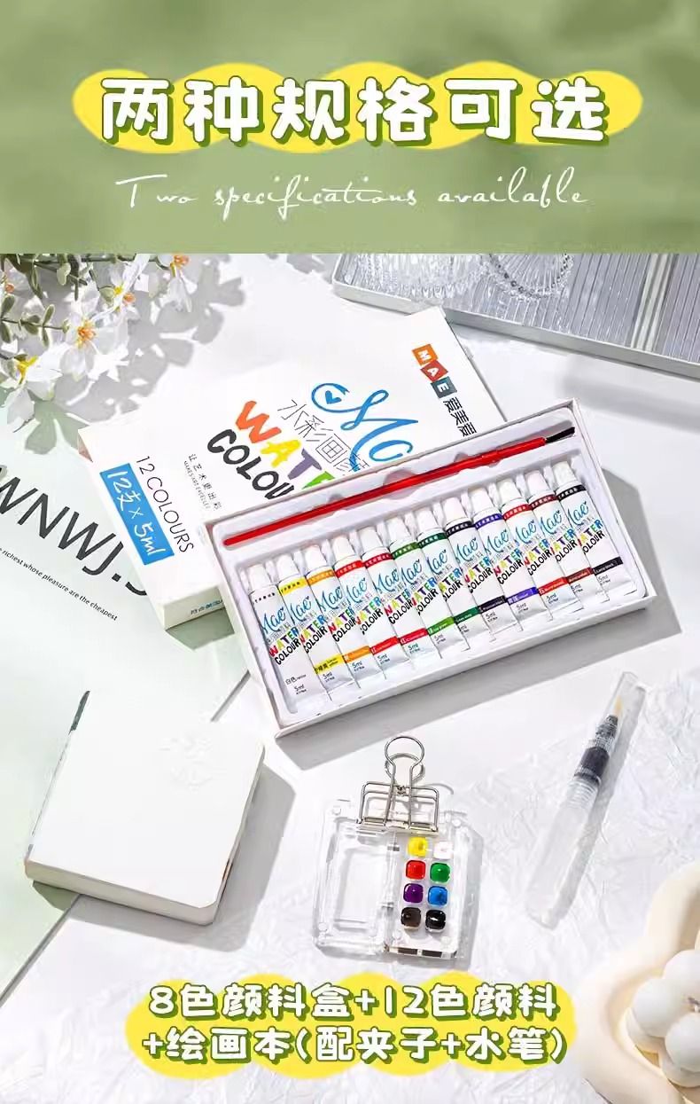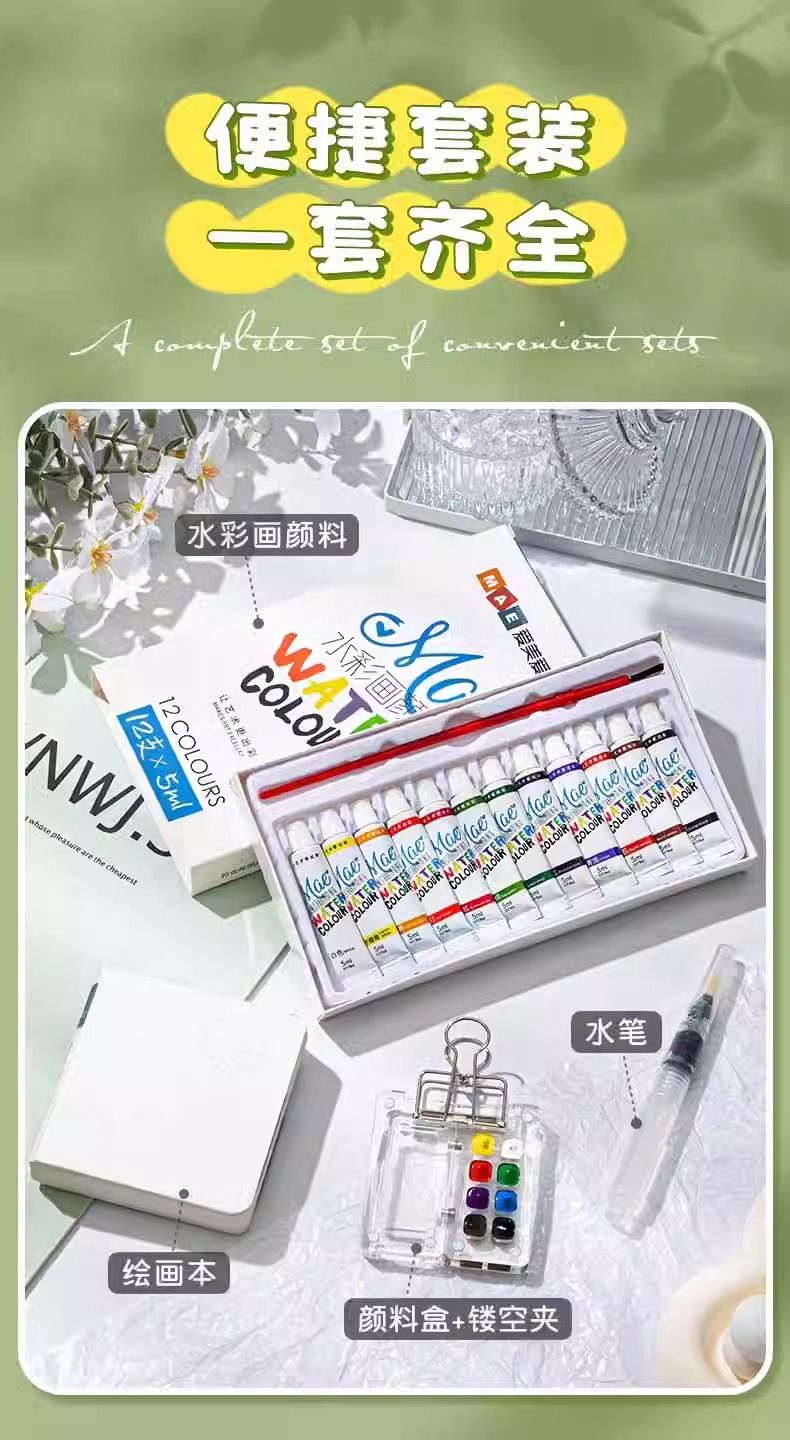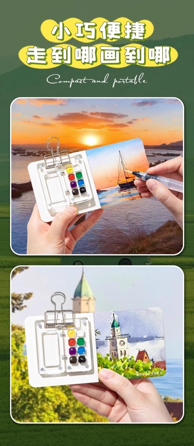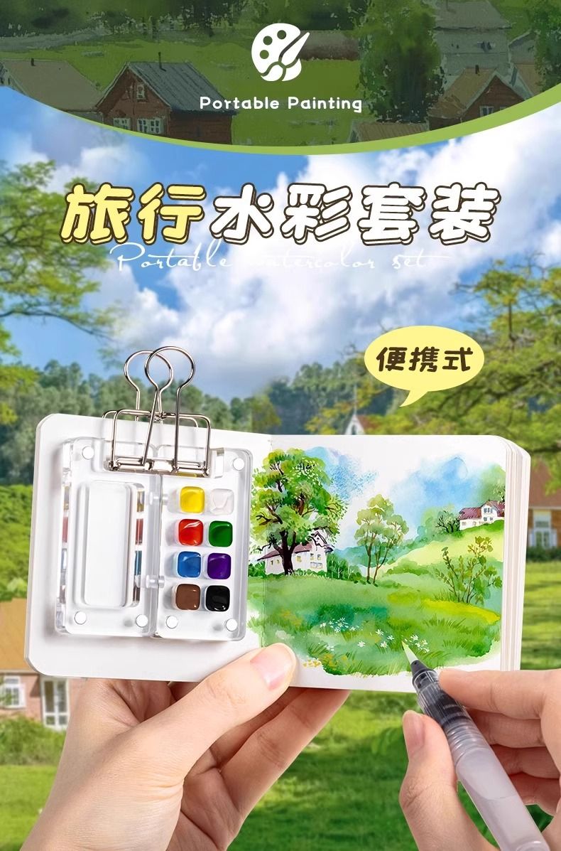 迷你水彩颜料盒随身便携手账本写生旅行绘画画本12水彩画套装全套