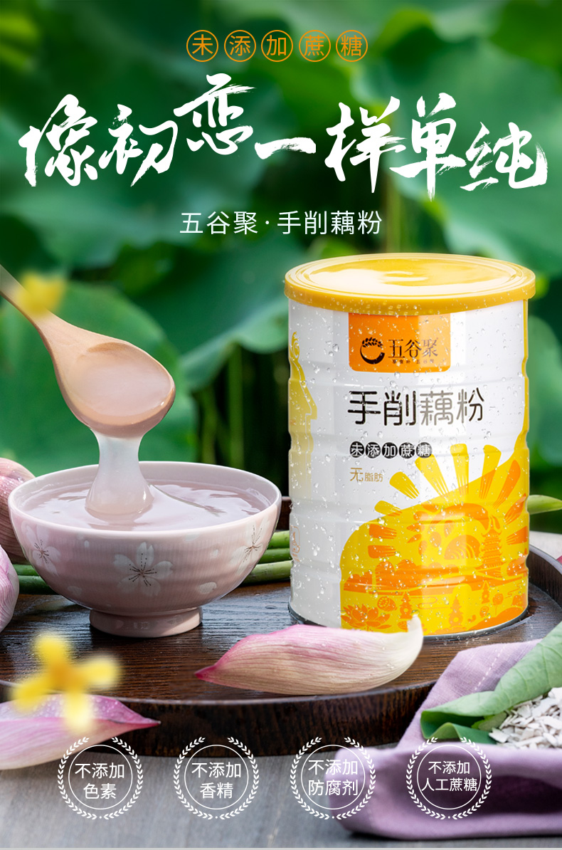 五谷聚 手削纯藕粉350g 杭州特产西湖藕粉纯手工原味无添加蔗糖莲藕粉羹