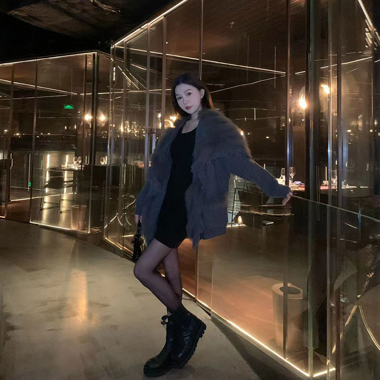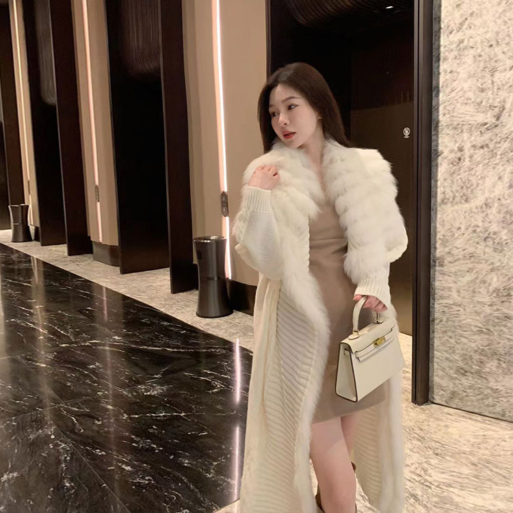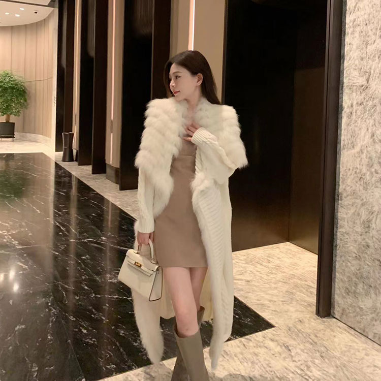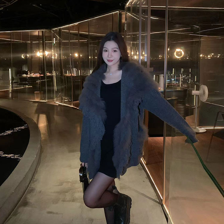 布朗尼秋 狐狸毛针织开衫 94腈纶 6羊毛 拼接毛:狐狸毛