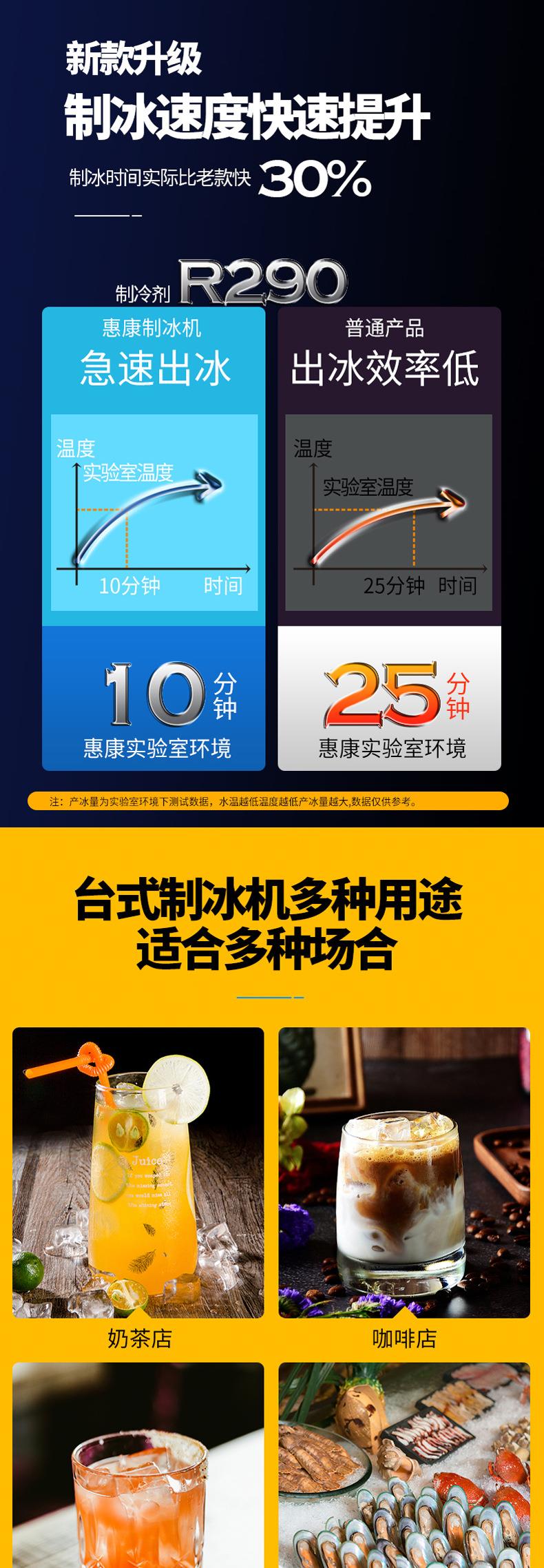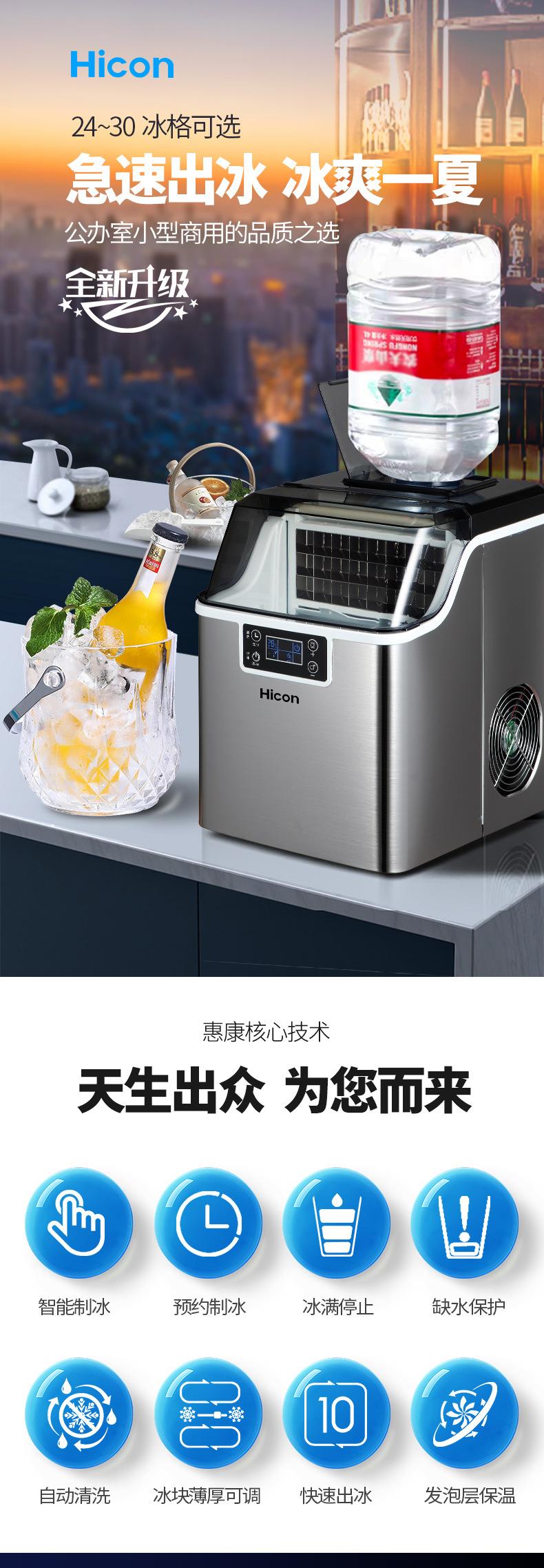 惠康商用家用小型奶茶店台式23年新款桶装水制冰机方冰块制作机
