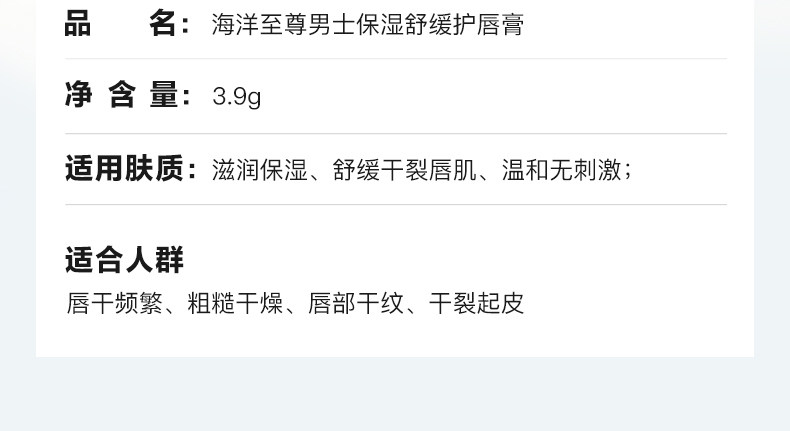 [男士专用] 海洋至尊润唇膏唇膏 保湿补水滋润不油防干裂秋冬男生礼物