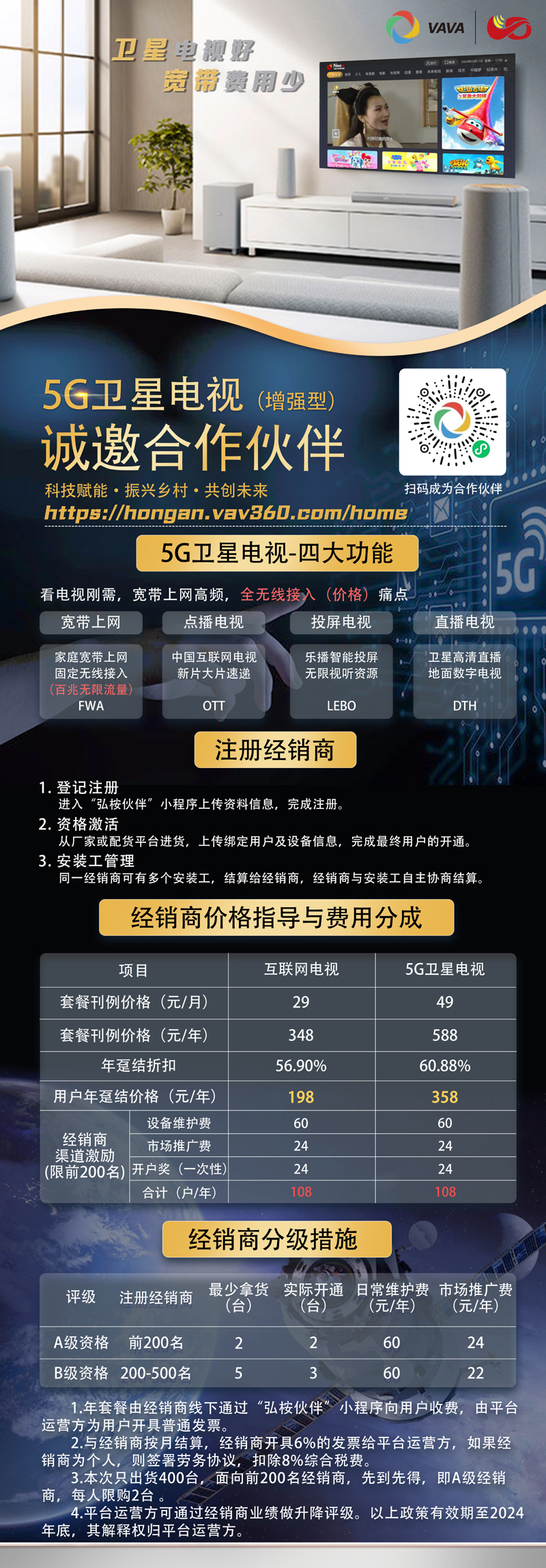 5,支持4G网络、视频套餐,开通月套餐或年套餐后,可以上网和视频点播。本功能需要安装人员扫专用二维码上传用户身份证和用户扫脸认证后付费开通