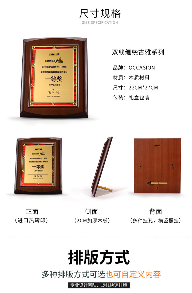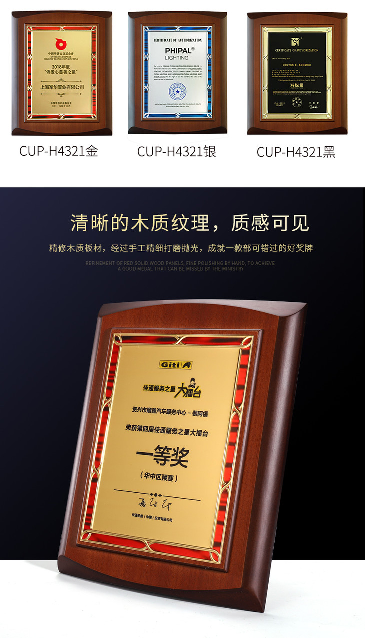 奖牌定制定做授权牌代理商加盟木质牌匾木托金属聘书制作高档证书