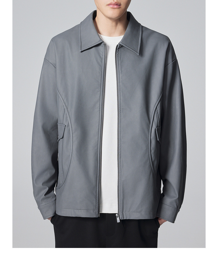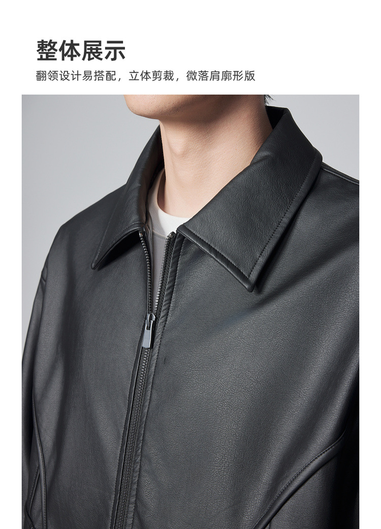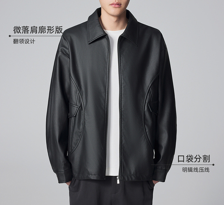 墨麦客男装洗水PU皮翻领夹克男2024秋新款简约纯色男士外套81221